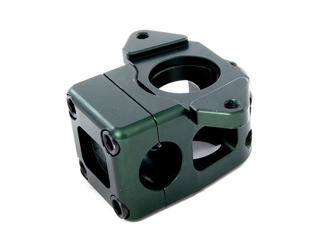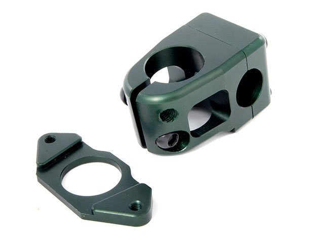 Der Ares Bykes "IND2" Vorbau sieht sehr schick aus und verringert das Verletzungsrisiko durch seine abgerundete Ecken. Der Lenker wird beim Ares Bykes "IND2" Vorbau durch vier CrMo Hohlschrauben fixiert.