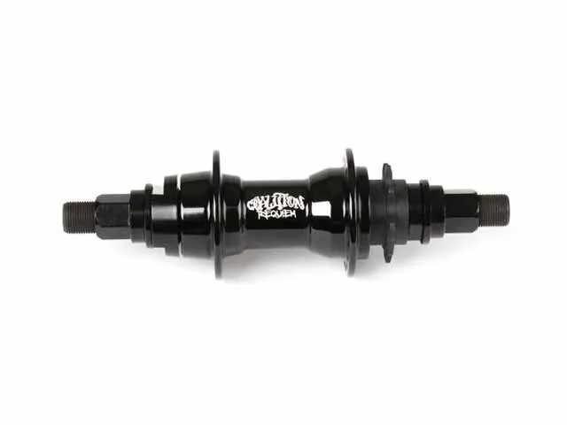 Für die Coalition "Requiem" Kassettennabe wird man bestimmt keine Totenmesse abhalten müssen, denn die Kassettennabe kann alles. Der Nabenkörper ist aus 6061-T6 Aluminium, die 14mm aus CrMo und der 9T Driver ist einteilig. Erhältlich ist die Coalition "Requiem" Kassettennabe als RHD oder LHD.