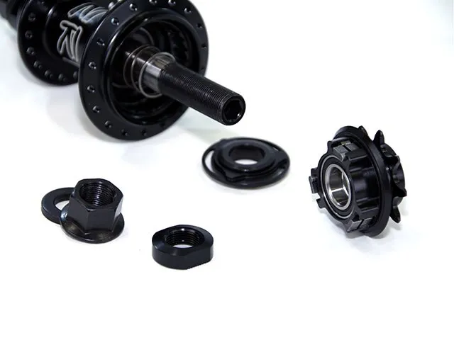 austauschbaren Gap-Scheiben ausgestattet, welche Dir die Verwendung als Freecoaster Nabe ermöglichen. Der große Vorteil dieser neuartigen Freecoaster-Technologie besteht darin, dass diese Nabe konstruktionsbedingt leichter als herkömmliche Freecoasternaben ist und sich Deine Kurbel beim Rückwärtsrollen nicht mitdreht, Du aber gegenüber der herkömmlich verwendeten Coaster Technik beim Antreten ein definiertes und je nach Gap-Einstellung, mittelbareres Antrittsgefühl vermittelst bekommst, welches dem einer Kassettennabe entspricht. Die zwei mitgelieferten Kunststoffscheiben dieses