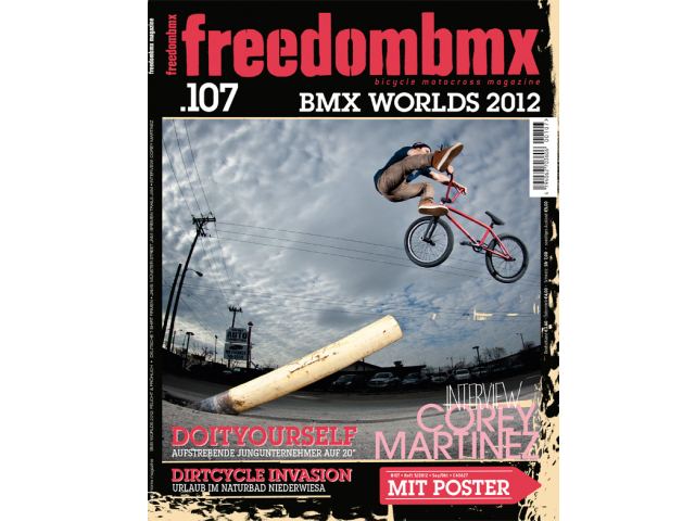 Wieder einmal wird der Einband der FreedomBMX von schönen Stickern verziert. Corry Martinez schmückt das Cover und Oli Kienzle zeigt Euch sein "My other ride is". Außerdem werden die ein oder anderen neuen 2013er Kompletträder ausführlich getestet. Alles in Allem ist die FreedomBMX "Ausgabe #107" wieder eine sehr gelungene Ausgabe.