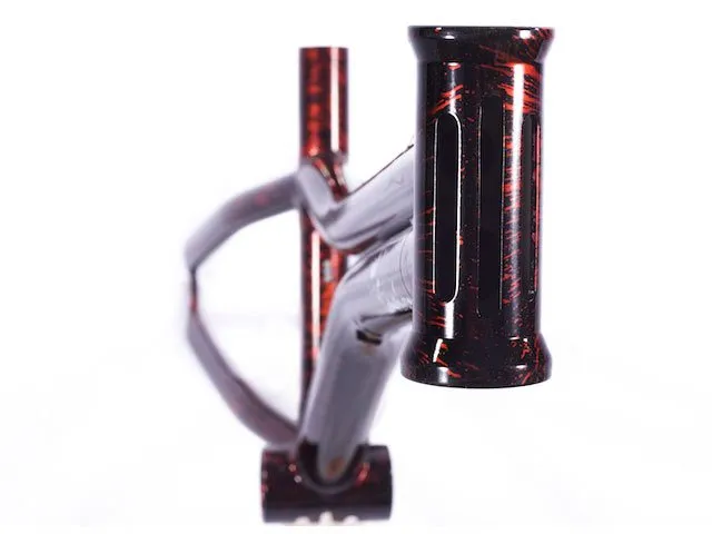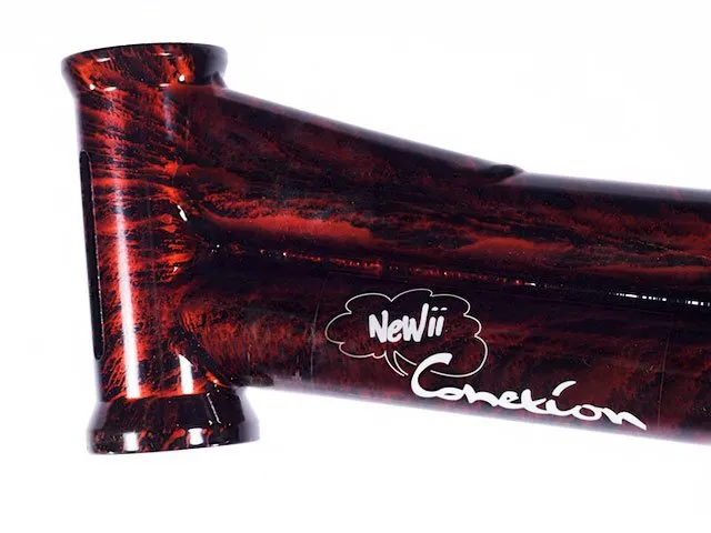 Der KGB "New Conexion" Rahmen besteht aus 4130 Sanko CrMo. Durch die inovative Farbe und das Weglassen der Bremssockel wirkt der BMX Rahmen sehr elegant .