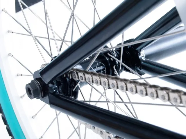 - BMX Reifen (hinten): Fit Bike Co. "FAF Teal-Gumwall", 2,25"