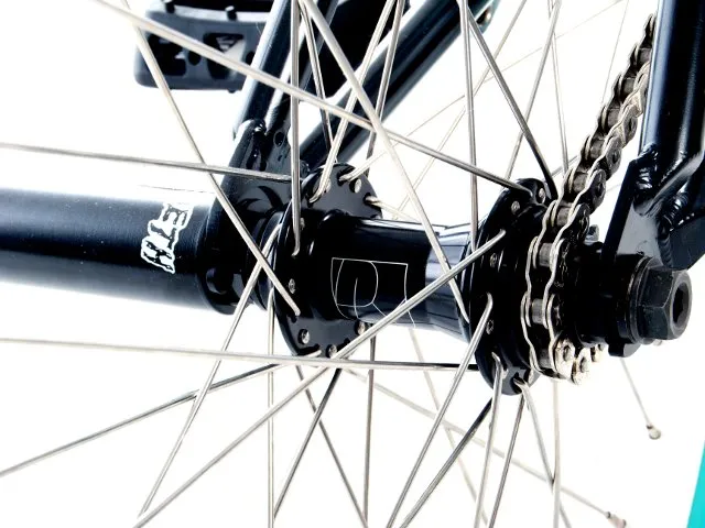 - Nabe (Hinten): Deluxe "F-Lite V2" Kassette, CrMo Achse, 10mm Achsenschrauben, CNC gefräster Aluminiumkörper, Sealed Bearings, 36H