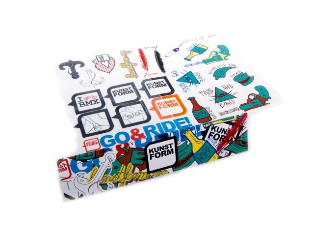 Hier ist es, das lang ersehnte kunstform?! "Stickerset 2012". Auf den BMX Worlds 2012 haben wir es euch vorgestellt und es wurde uns förmlich aus den Händen gerissen. Jetzt könnt ihr es aber ganz stressfrei bei uns im Laden bestellen. Das kunstform?! "Stickerset 2012" enthält 22 Sticker und wenn ihr euch einmal das kunstform?! "Young and Bored" T-Shirt angeschaut habt, erkennt ihr vielleicht das ein oder andere Design wieder. Holt euch das Set und schmückt alles was ihr habt damit!