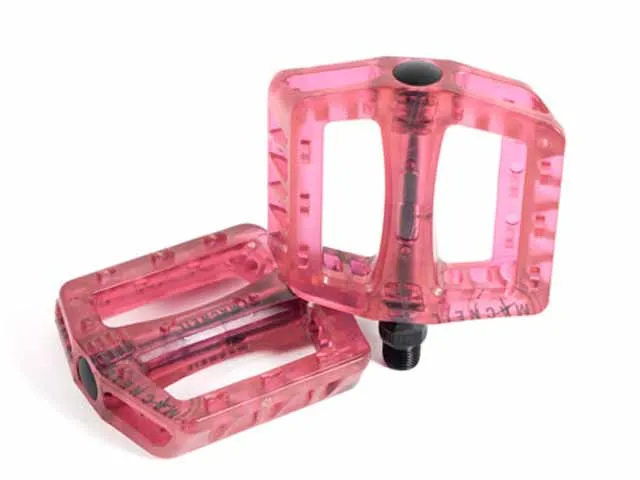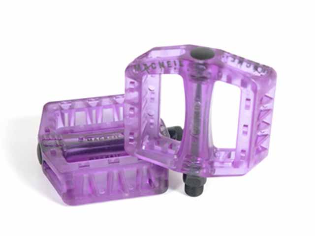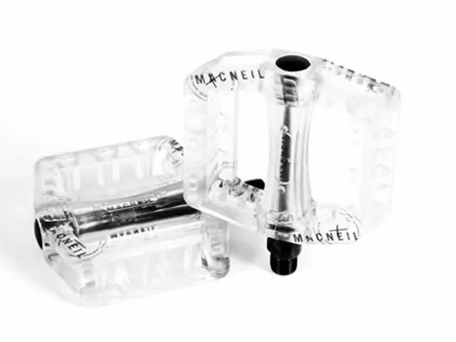 Die MacNeil "Gauge" Pedale sind die Kunststoff Pedale aus dem Hause MacNeil Bikes. Der Körper ist aus hochwertigem Polycarbonat und Logos wurden mit Lasern in den Körper geätzt. Erhältlich sind die MacNeil "Gauge" Pedale in lila-clear, clear und rot-clear.