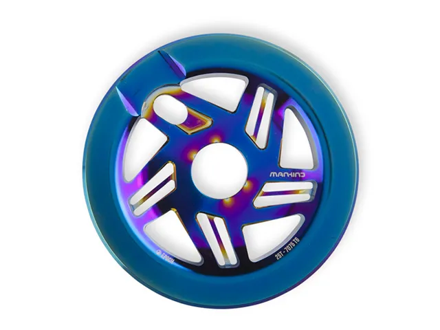 Das Mankind Bike Co. "Epoch Guard" Kettenblatt - Oilslick ist ein aus einem Stück gefrästem 7075 T6 Aluminum gefertigtes Kettenblatt und Sprocketguard in einem und schützt Deine Kette ideal. Es wird mit einem 19mm und 22mm Adapter geliefert. Jetzt auch in wunderschöner Oilslick Farbe erhältlich.