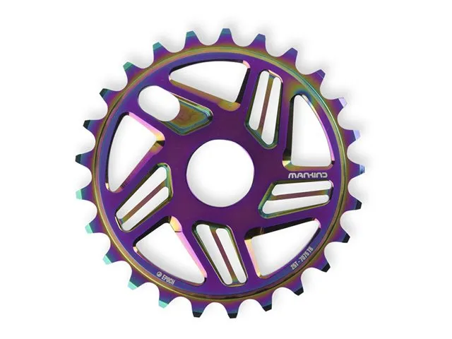 Das Mankind Bike Co. "Epoch" Kettenblatt - Oilslick ist ein CNC gefertigtes Kettenblatt und aus stabilem 7075 T6 Aluminum hergestellt. Es wird mit einem 19mm und 22mm Adapter geliefert. Jetzt auch in wunderschöner Oilslick Farbe erhältlich.