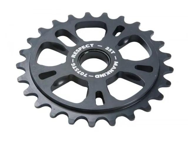 Das Mankind Bike Co. "Respect Alu" Kettenblatt ist ein hochwertiges und stabiles CNC gefertigtes Kettenblatt mit 25T und kommt in wunderschönem schwarz zu Dir. Es passt für 19mm und 22mm Kurbelachsen.