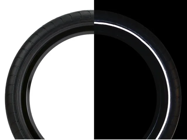 Der Odyssey BMX "Chase Hawk" Reifen - Reflect Streifen ist ein moderner und qualitativ sehr hochwertiger BMX Slick Hochdruck Reifen mit seitlich leichter Profilierung und stabilen Seitenwänden und bietet sich mit besten Grip Eigenschaften wunderbar zum Street und Park fahren an. Die bei diesem Odyssey BMX "Chase Hawk" Reifen - Reflect Streifen auf beiden Seitenwänden integrierten Reflektorstreifen leuchten bei Dunkelheit, wenn sie von z.B. von Autoscheinwerfern beleuchtet werden.