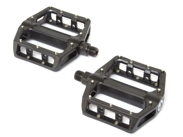 Die Superstar "Alloy" Pedale mit schraubbaren Pins sind BB gelagert und können mit einem 15mm Maulschlüssel oder einem 6mm Innensechskant montiert werden. Aluminium ist schön leicht und durch die Pins halten die Superstar "Alloy" Pedale sehr lange.