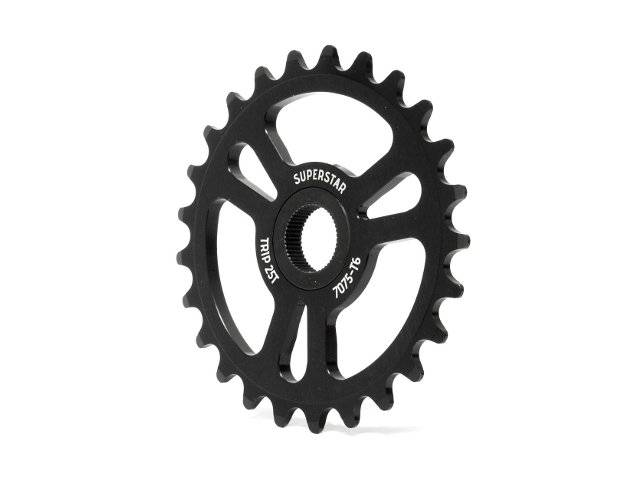 Also das Superstar "Trip Spline Drive" Kettenblatt ist mal ein echt geiles Kettenblatt. Durch den Spline Drive wird Dein Kettenblatt niemals unrund laufen und somit wird Deine Kette immer gleichmäßig gut gespannt sein. Das Superstar "Trip Spline Drive" Kettenblatt wiegt fast nichts und ist 5mm dick.