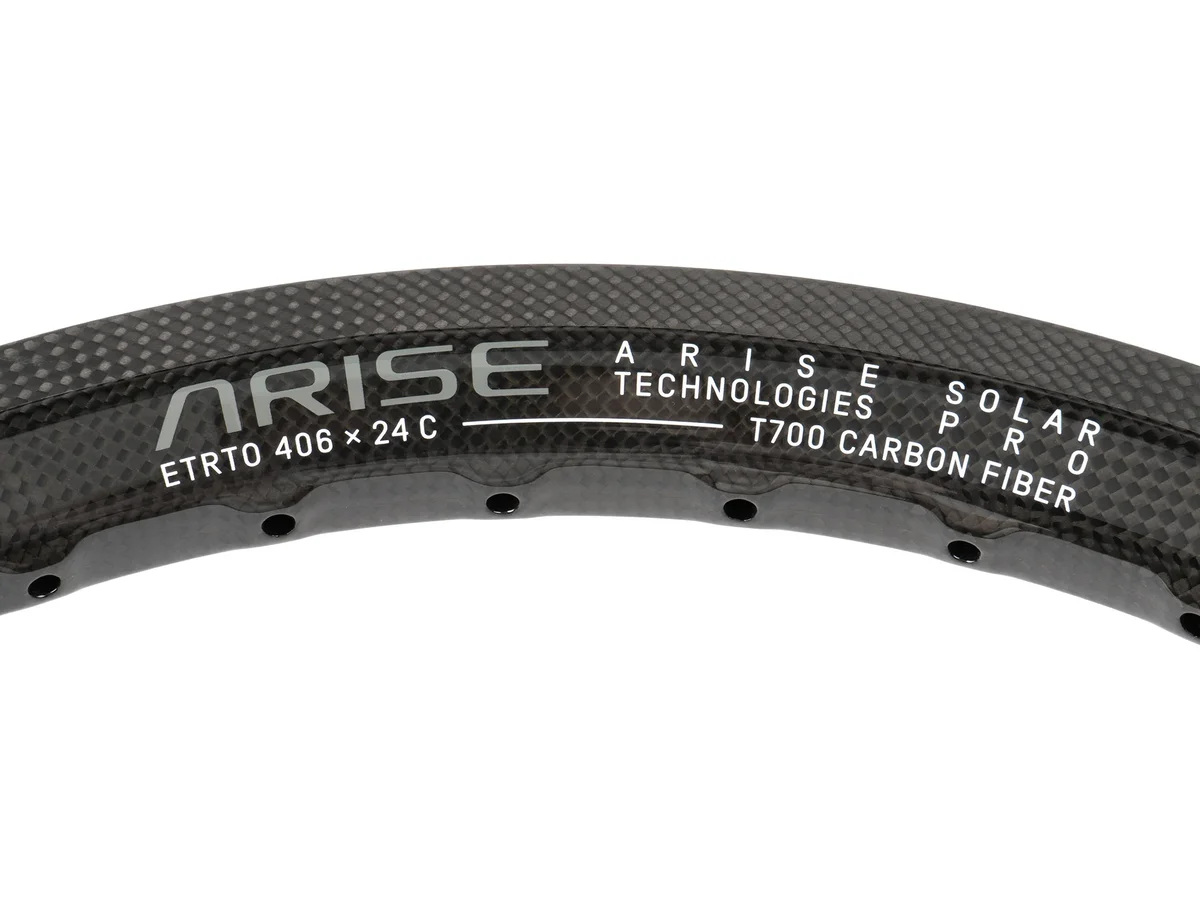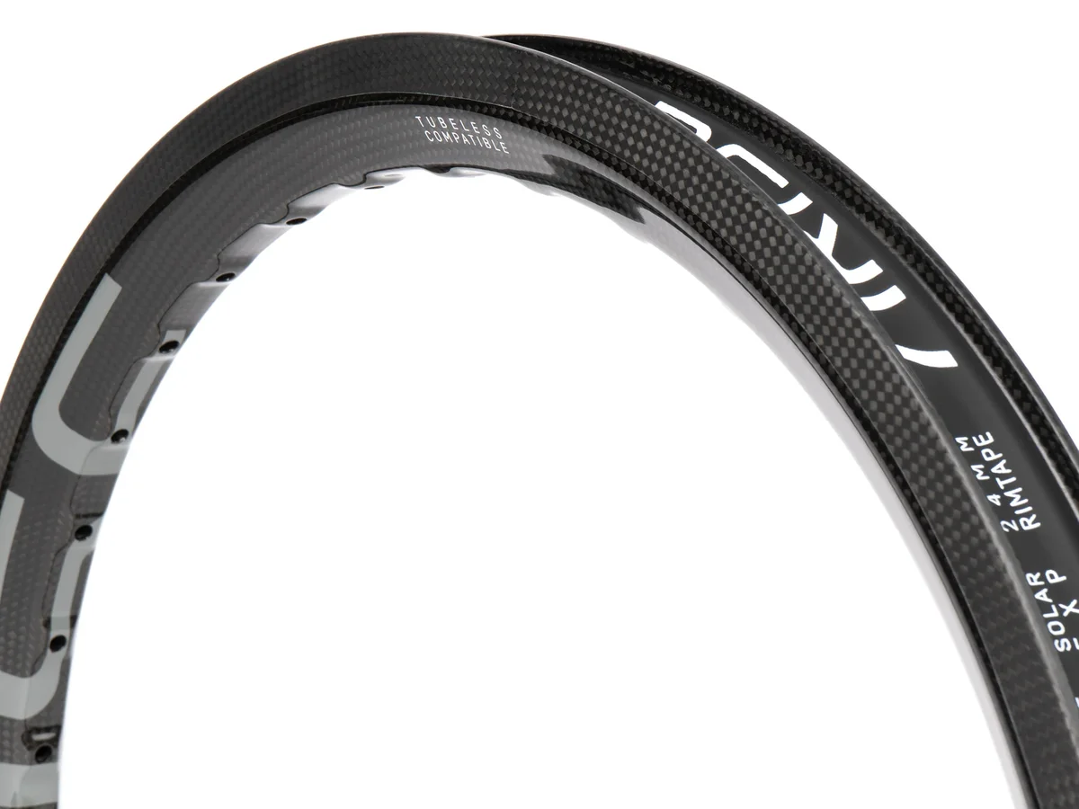 Diese Arise "Solar Pro Rear" BMX Race Felge hergestellt aus erstklassigem T700 Torayca Carbon bietet durch ihre Monocoque-Bauweise maximale Steifigkeit bei einem ultraleichten Gewicht von nur 310g. Sie ist Tubeless-Ready und verfügt über eine speziell strukturierte Flanke für überragende Bremsleistung. Die maximal empfohlene Speichenspannung beträgt 145 kgf. Maximale zugelassenes Gewicht: 110kg