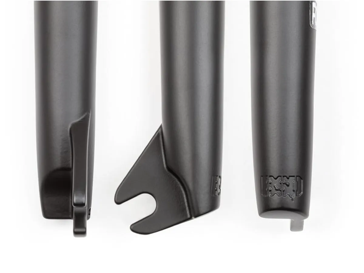 Diese BSD "Jonesin" BMX Gabel ist die Signature BMX Gabel von Sam Jones und kommt mit einem 22mm kurzen Vorlauf, welcher vorallem bei nosemanuals und nosespins sich sehr gut anfühlt. Die Gabelarme der BSD "Jonesin" BMX Gabel sind konifiziert und verjüngen sich zu den am Ende befindlichen, sehr stabilen, 6mm dicken Investment Cast (Feinguß) Ausfallenden mit 30mm Vorlauf hin. Das Design dieser Gabel bietet natürlich ausreichend Platz für Pegs, aber auch für breite 2.4" Reifen und dank der Auswahl bester Materialien und modernster Herstellungsverfahren erhältst Du hier von BSD eine sehr hochwertige und stabile Street Gabel inklusive einem Top Bolt aus Aluminium.