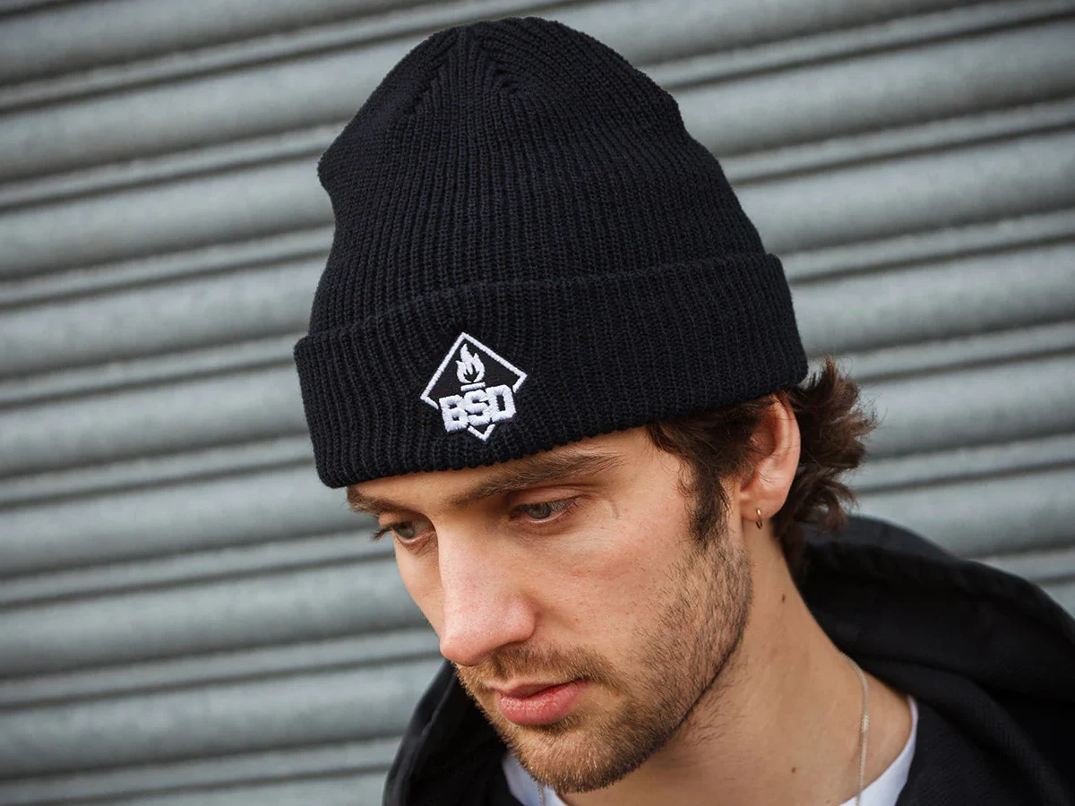 Diese aus Acryl gefertigte BSD "Roastin" Beanie Mütze hält Deinen Kopf und Deine Ohren an kalten Tagen warm. Die BSD "Roastin" Beanie Mütze hat ein genähtes BSD Logo Label.