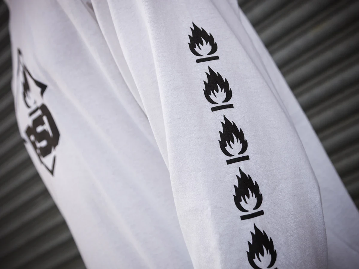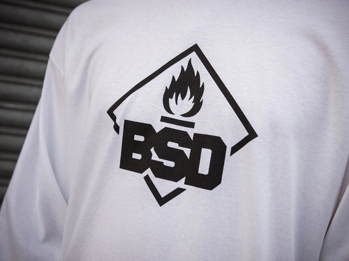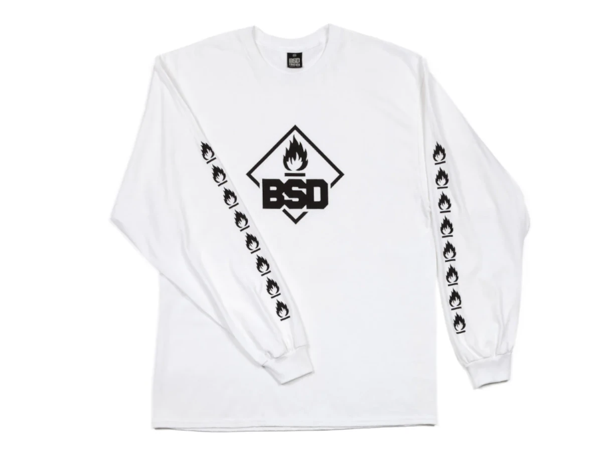 Das BSD "Roastin" Longsleeve - White besteht aus 100% Baumwolle und ist vorne und an den Ärmeln mit einem BSD Design bedruckt.