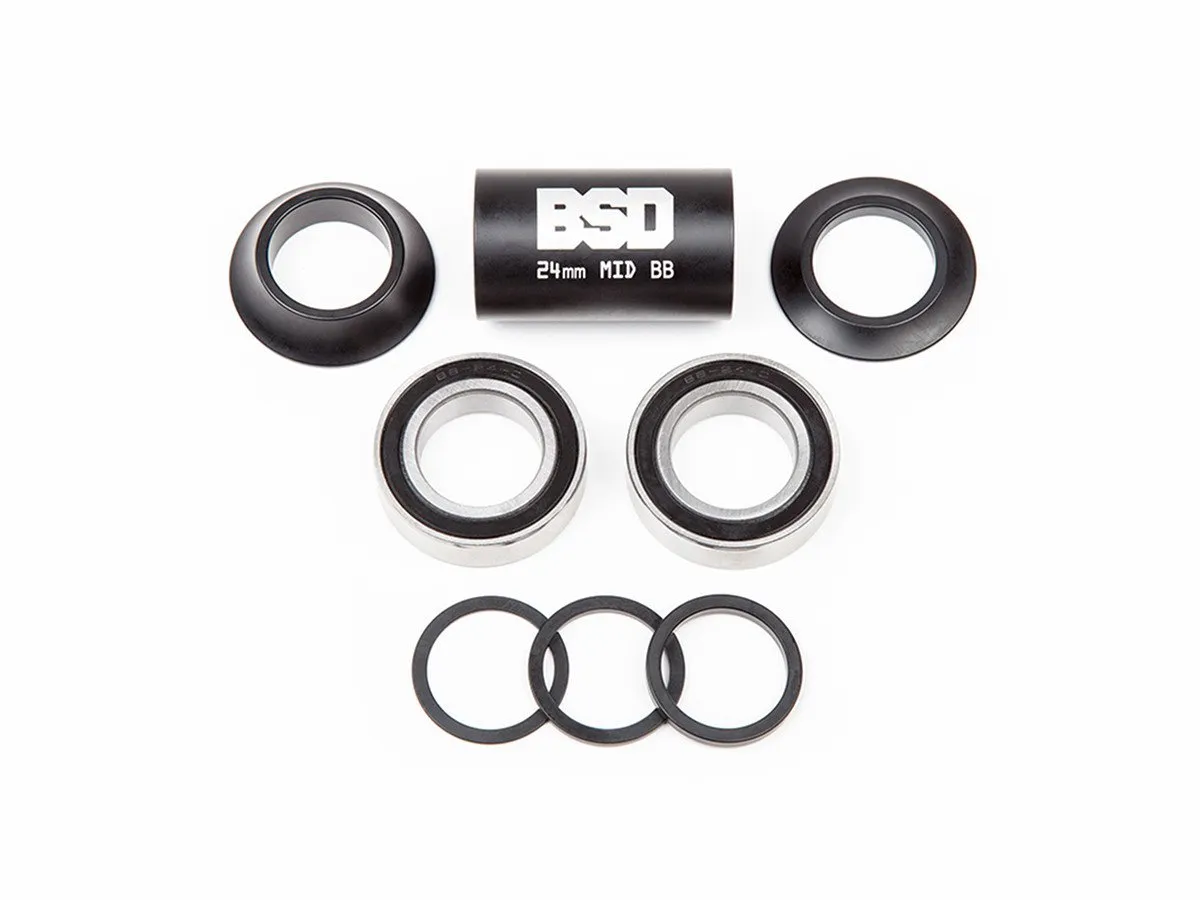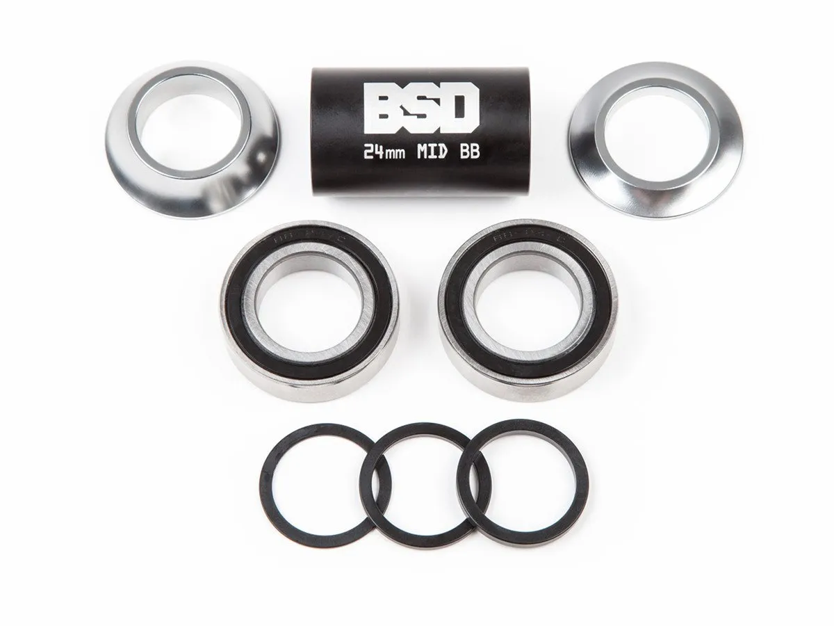 Das BSD "Substance XL Mid BB" Tretlager ist erhältlich für 24mm Kurbelachsen, beinhaltet alle nötigen Teile, um dein komplettes Mid BB zu ersetzen und passt perfekt zu den Rahmen von BSD.