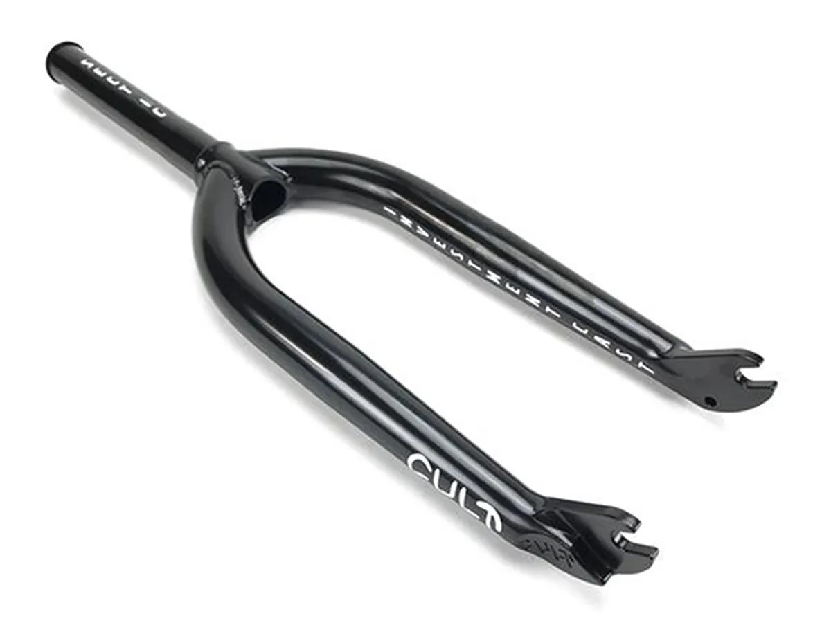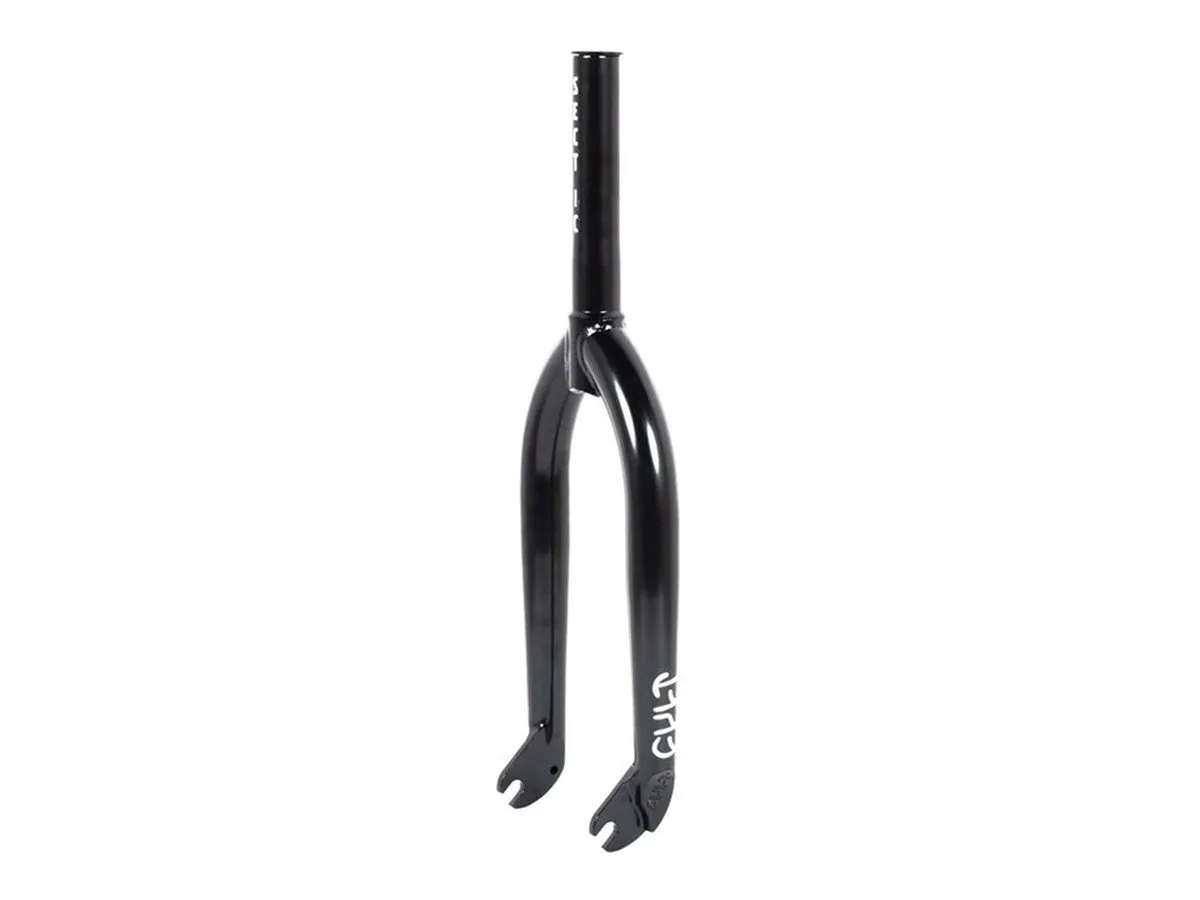 Die Cult "Sect IC V4" BMX Gabel kommt mit aktualisiertem Design und ist eine sehr hochwertige, sowie stabile Street Gabel, die aus wärmebehandeltem 4130 CrMo hergestellt ist. Der 162mm lange, CNC gefertigte Gabelschaft ist aus einem Stück gefertigt und besitzt einen integrierten Lagerkonus, der für minimalen Montageaufwand sorgt. Die Gabelarme der Cult "Sect IC V4" BMX Gabel sind konifiziert und verjüngen sich zu den am Ende befindlichen, sehr stabilen, 5mm dicken Investment Cast (Feinguß) Ausfallenden hin. Das Design dieser Gabel bietet natürlich ausreichend Platz für Pegs, aber auch für eine fette 2.4" Bereifung und dank der Auswahl bester Materialien und modernster Herstellungsverfahren erhältst Du hier von Cult eine sehr hochwertige und stabile Street Gabel inklusive einem Top Bolt aus Aluminium.