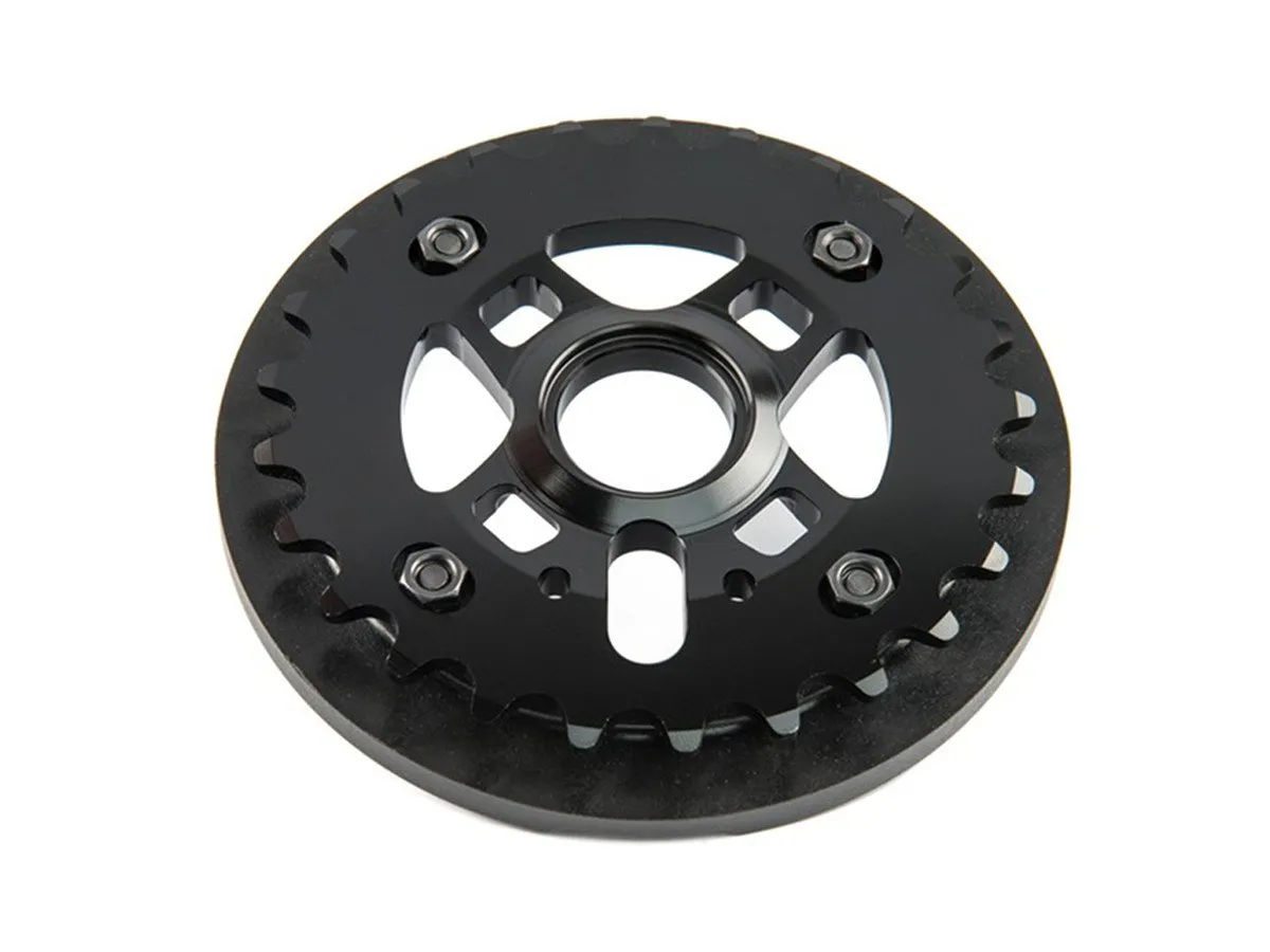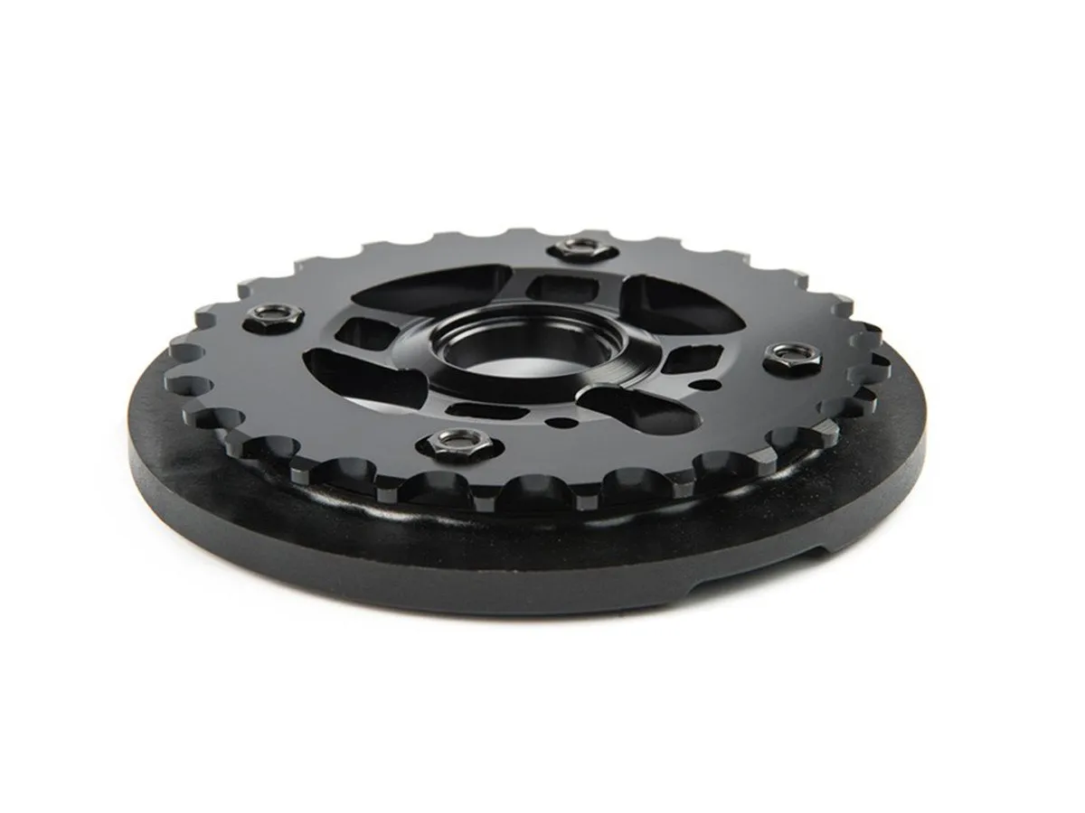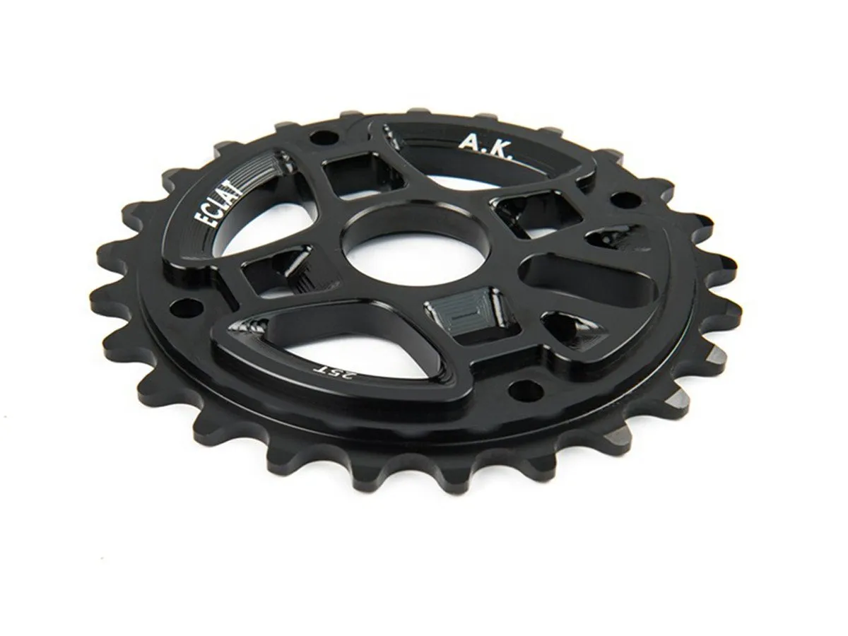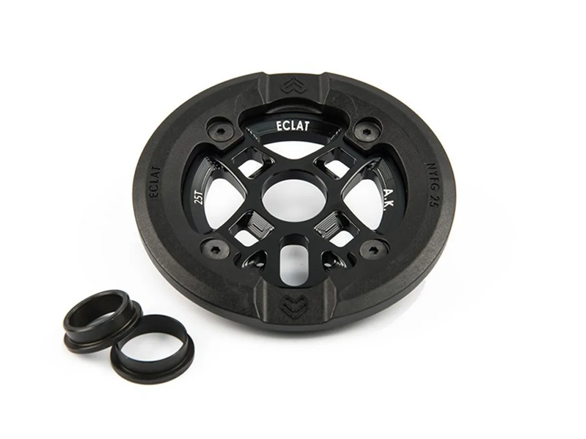 Das eclat "AK Guard" Kettenblatt ist das Signature Kettenblatt von Alex Kennedy und kommt mit einem Kettenblattschutz welcher aus Kunststoff besteht. Du kannst dieses eclat "AK Guard" Kettenblatt mit 19mm, 22mm und 24mm Kurbelachsen fahren und sofern sich der Kettenblattschutz abgenutzt hat, kannst Du diesen austauschen.
