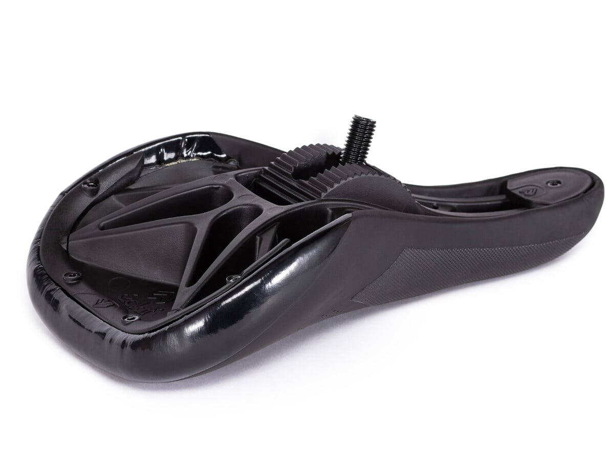 Der eclat "Bios Slim" Pivotal Sattel - Performance Black ist dünn gepolstert und hat die für eclat bekannte und eigens entwickelte Kunststoffschalen 2000Konstruktion mit glatter Unterseite, welche mit geschraubten Griffblenden ausgestattet ist.