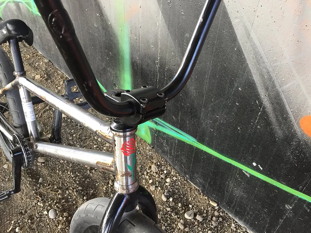 Ich fahre ein street Setup, das relativ schlicht ist. Das heißt, ich verzichte auf Farben und Sticker an meinem Rad. Grund dafür ist, dass mir die Kombination von einfachen Farben sehr gefällt.