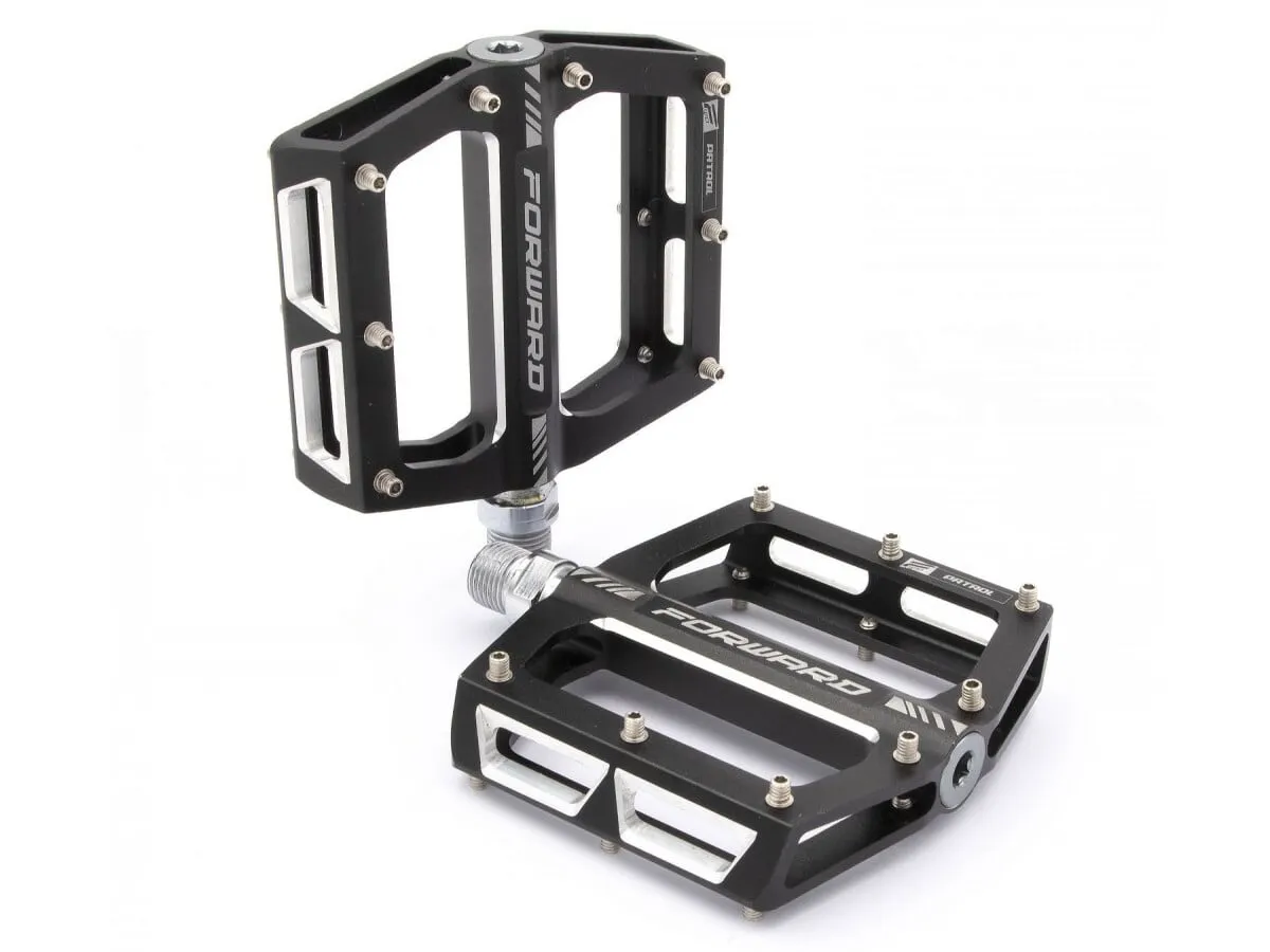 Die Forward "Patrol" Pedale sind mit abgedichteten Lagern und einer CrMo Achse ausgestattet um die Haltbarkeit der Pedale zu erhöhen. Für den Grip sorgen die schraubbaren Pins die austauschbar sind. Da bei den Forward "Patrol" Pedale der Pedalkörper aus CNC Aluminium besteht wiegt das Paar nur 330g.