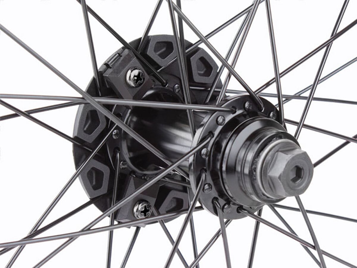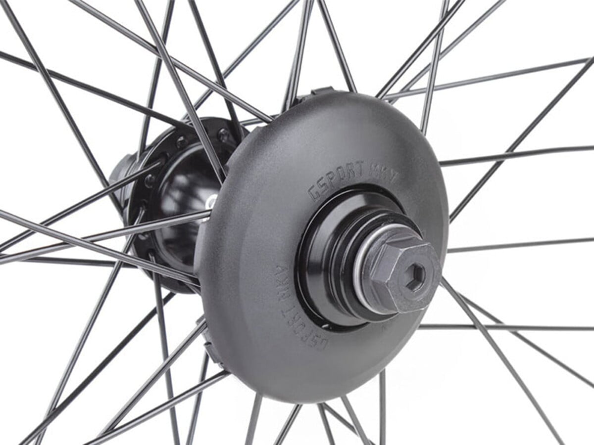 Der G-Sport BMX "G.L.A.N.D. MRK V" Front Hubguard kommt mit Schrauben und ist kompatibel mit den meisten Vorderradnaben, welche mit 36 Speichen 3fach gekreuzt eingespeicht sind.