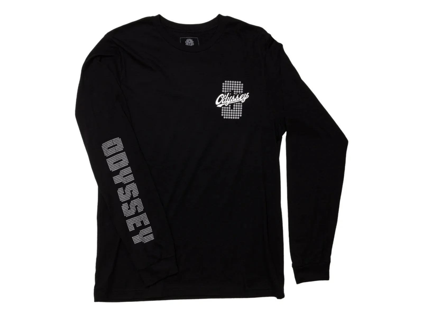 Das Odyssey BMX "Lite-board" Longsleeve - Black besteht aus 100% Baumwolle und kommt mit Odyssey Logos auf der Vorderseite sowie auf den Ärmeln.