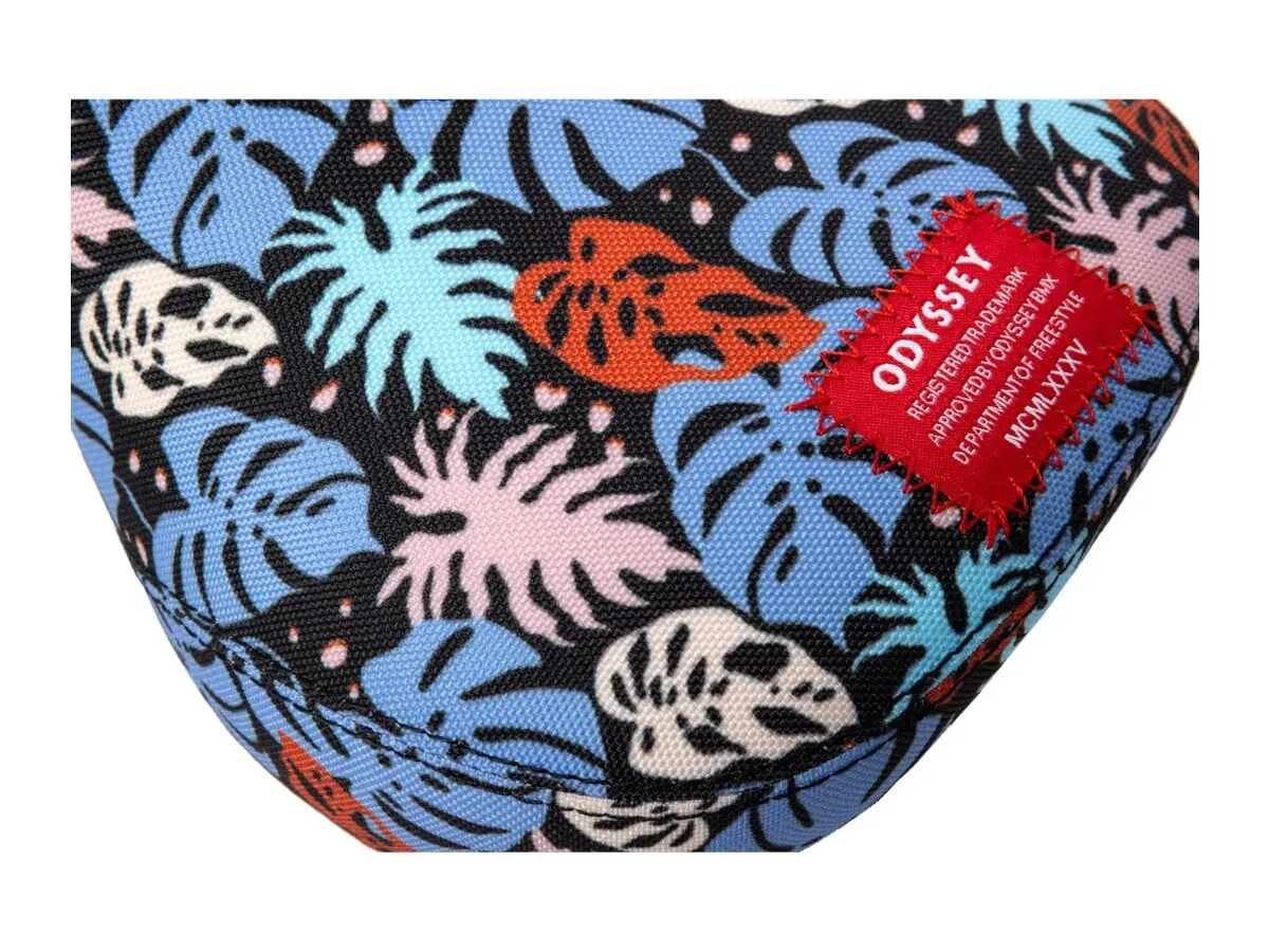 Wenn du schon nicht in die Tropen reisen kannst, dann hol dir wenigstens das Urlaubsfeeling aufs Bike! Der Odyssey BMX "Tropical" Pivotal Sattel ist ein klassischer 'Fat' Pivotal-Sattel und kommt mit tropischem Style und rundum bedrucktem Design. Veredelt mit hochwertiger Sublimationsgrafik und einem gewebten roten Label.