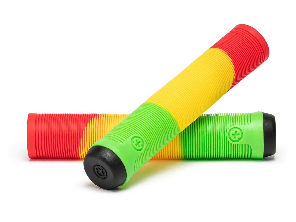 Die SaltPlus "XL" Griffe - Ohne Flansch werden aus hochwertigem Soft Krayton gefertigt, kommen mit einem griffigem Lamellenoberflächen Design und einem paar steckbarer Nylon Lenkerenden.