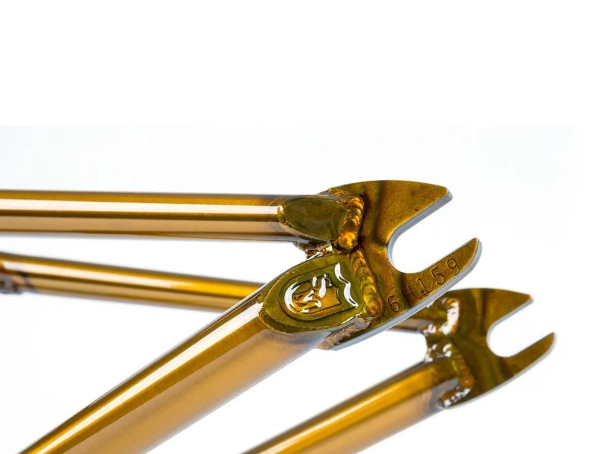 - Material: 100% 4130 CrMo, Oberrrohr und Unterrohr Gussets, konifizierte Rohre, verjüngte Hinterbau Rohre, integrierter Steuersatz
