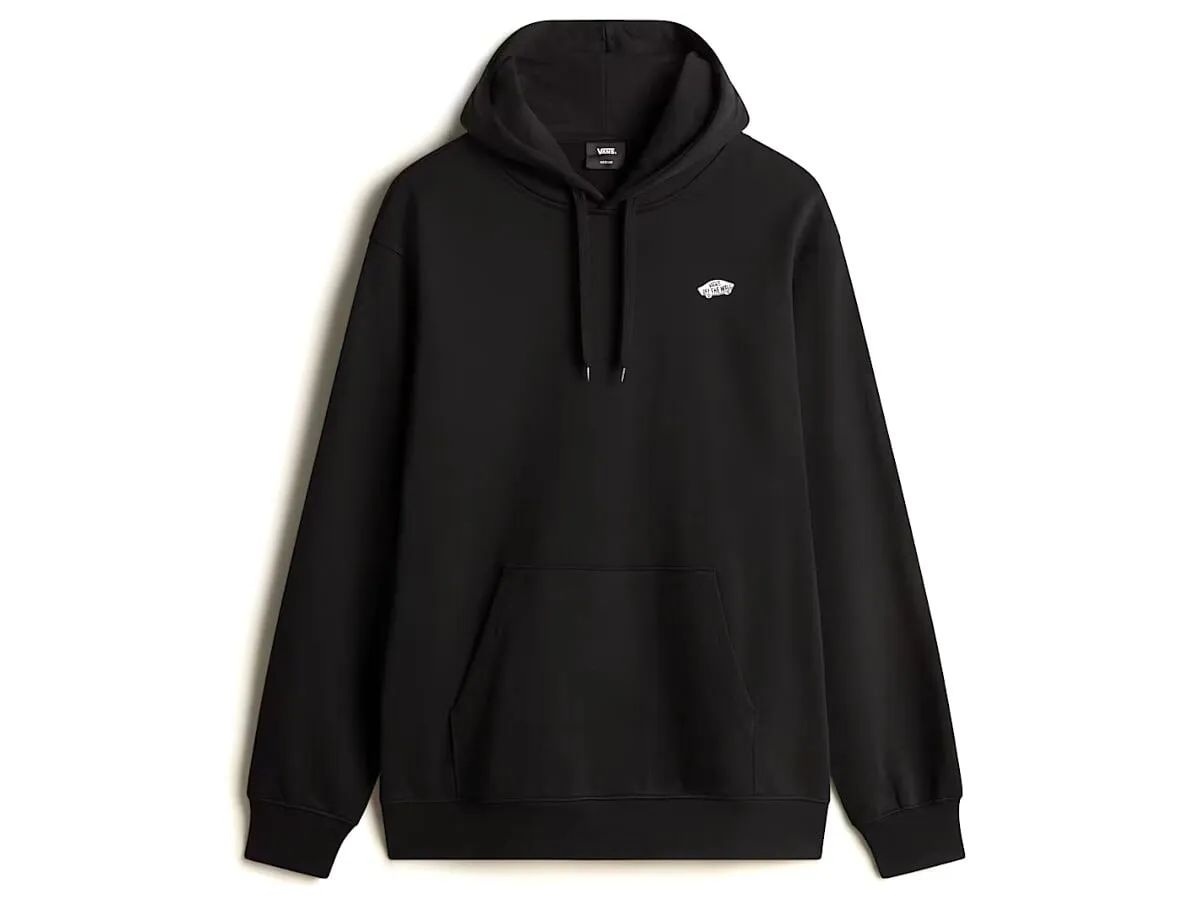 Der Vans "Style 76 II Loose Fit" Hooded Pullover - Black/White besteht aus 100% Baumwolle und ist auf der Vorder- und Rückseite mit einem VANS logo bedruckt.