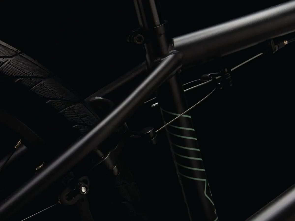 - BMX Rahmen: 4130 CrMo, integrierter Steuersatz, investment cast Sattelklemme, Mid BB