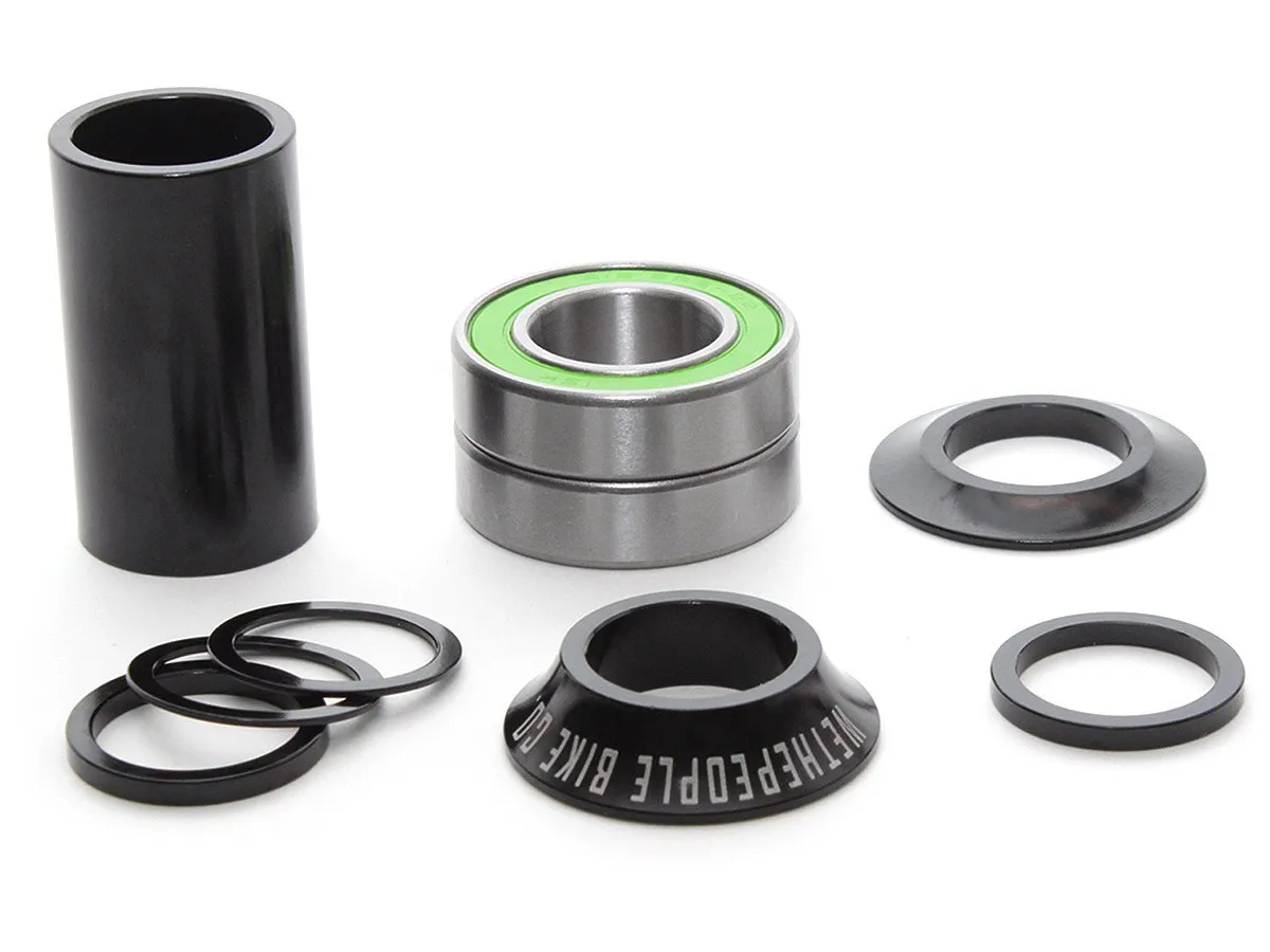 Das wethepeople "Mid BB" Tretlager kommt mit einem kompletten Satz hochwertiger SB Lager, Distanzringen und einer Distanzhülse aus Aluminium zu Dir.