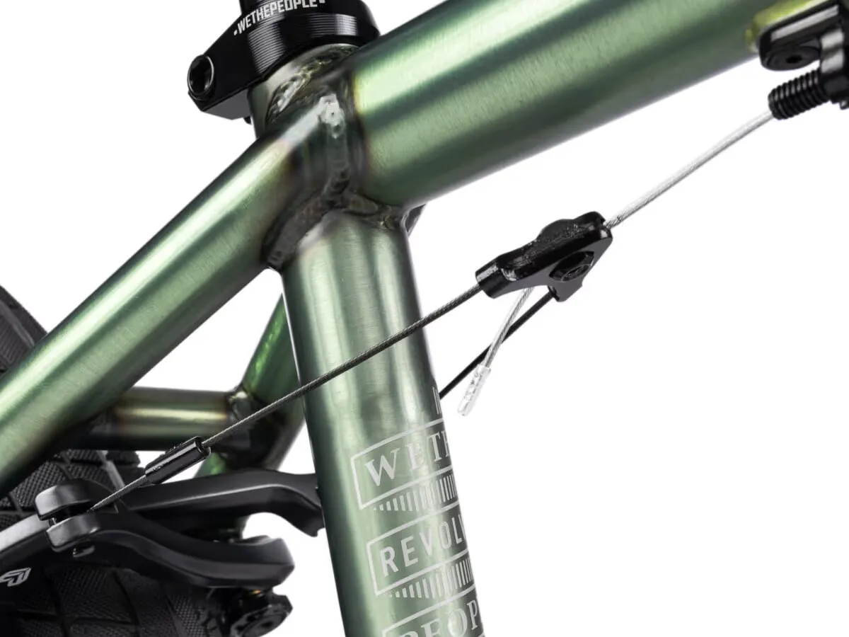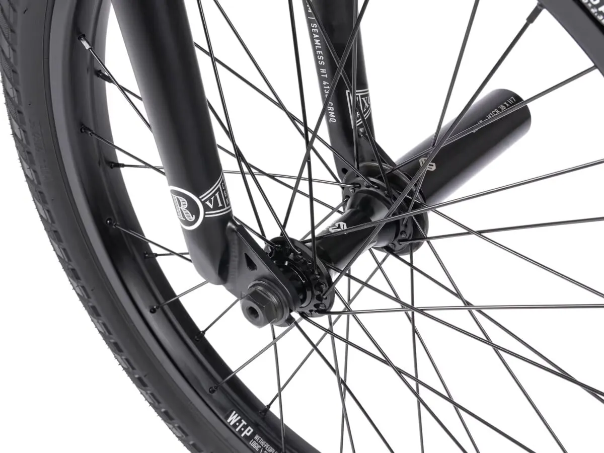 - BMX Rahmen: wethepeople "Revolver" BMX Rahmen, 100% Sanko 4130 CrMo, verjüngtes Unterrohr und Hinterbaustreben, abschraubbare Bremsausstattung, integrierte Kettenspanner, invest cast wishbone, 7.5mm Ausfallende, Mid BB