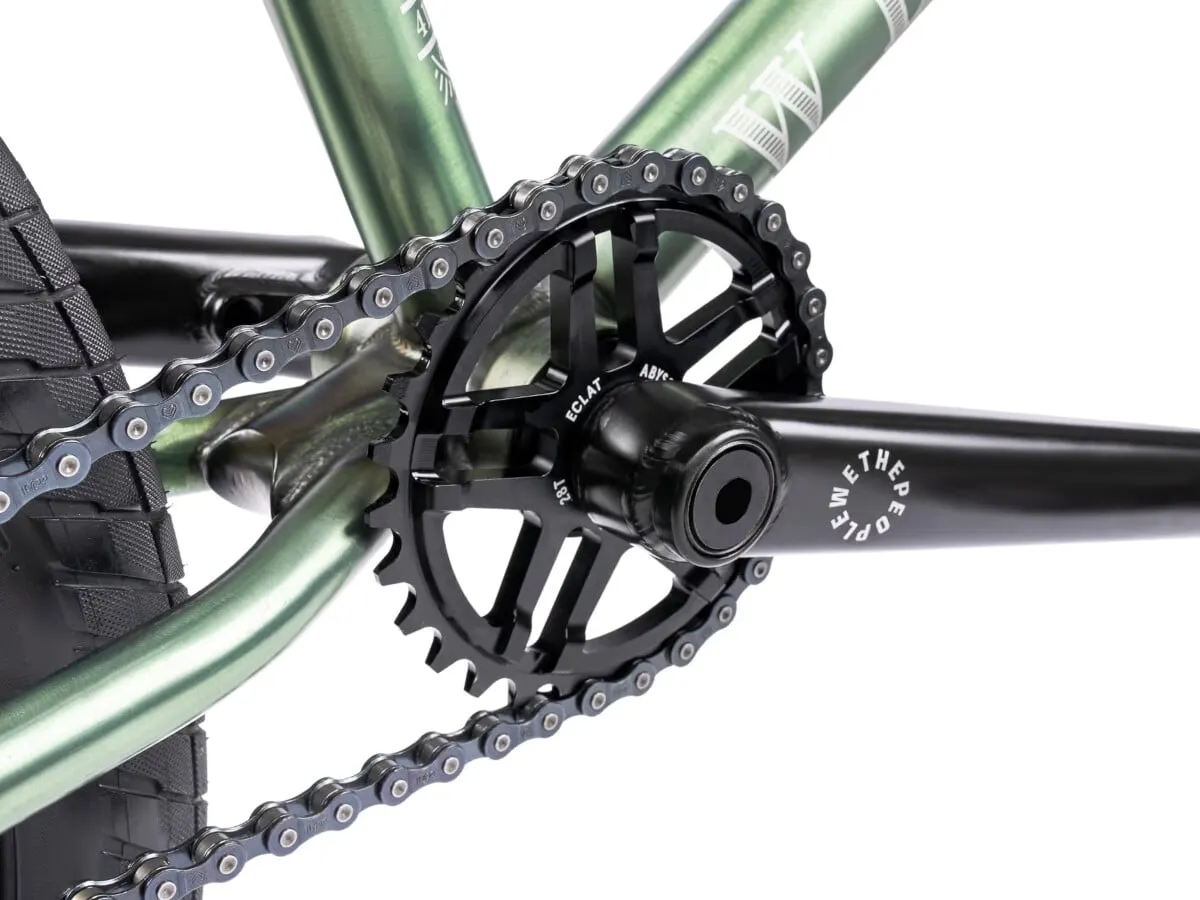 besteht aus 100% Sanko CrMo und ist ausgestattet mit den aktuellsten, aber auch hochwertigsten Anbauteilen von wethepeople, eclat und SaltPlus. Ein Highlight ist die eclat "Pulse" Kassettennabe mit CrMo Hubguard, welche mit einem 9T SDS-Antrieb ausgestattet ist somit Du frei entscheiden kannst, ob Du links oder rechts die Kette fährst. Der wethepeople "Revolver" Rahmen, sowie ein Laufradsatz mit industriegelagerten eclat "Pulse" Naben, eingespeicht in den wethepeople "Logic" Hohlkammerfelgen, dem wethepeople "Patrol" Aluminium Kettenblatt mit 28 Zähne und viel Liebe zum Detail, machen aus dem