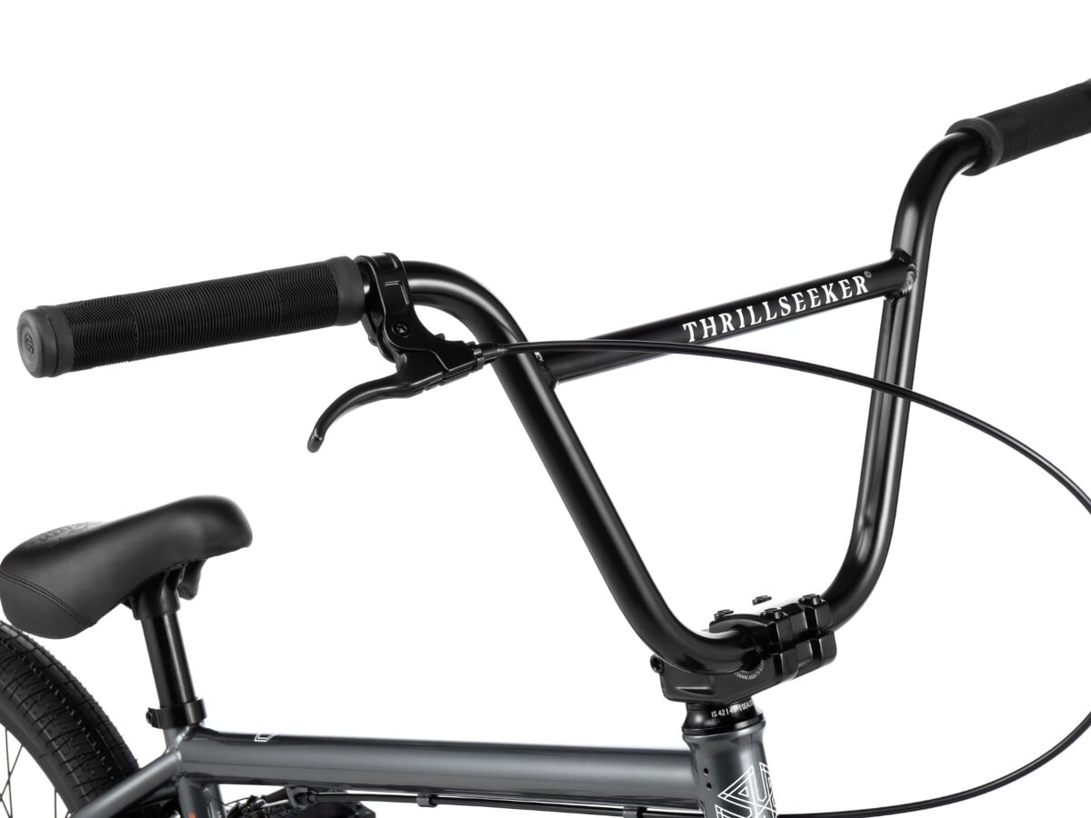 Das wethepeople "Thrillseeker M" BMX Rad - Gun Metal Grey ist ein modern ausgestattetes BMX Komplettrad der Einstiegsklasse und bietet Dir eine grundsolide Ausstattung mit Anbauteilen von Salt, SaltPlus und eclat. Das wethepeople "Thrillseeker M" BMX Rad - Gun Metal Grey kommt mit einem sehr kurzen Hinterbau von 12.75" und einer kürzeren Gabel mit 26mm Vorlauf, was das BMX um einiges wendiger macht und den Lernprozess unterstützt, zusätzlich ist es mit einem abgedichtetem Steuersatz ausgestattet, so dass der Pflegeaufwand im Vergleich zum Loose Ball Steuersatz deutlich reduziert ist. Mit seinem 20" langen Oberrohr ist das wethepeople "Thrillseeker M" BMX Rad - Gun Metal Grey als Allround BMX Rad ideal für jugendliche Einsteiger des BMX Sports und bietet Dir die Möglichkeit Dich in allen BMX Disziplinen auszuprobieren zu können und erste Tricks zu erlernen.