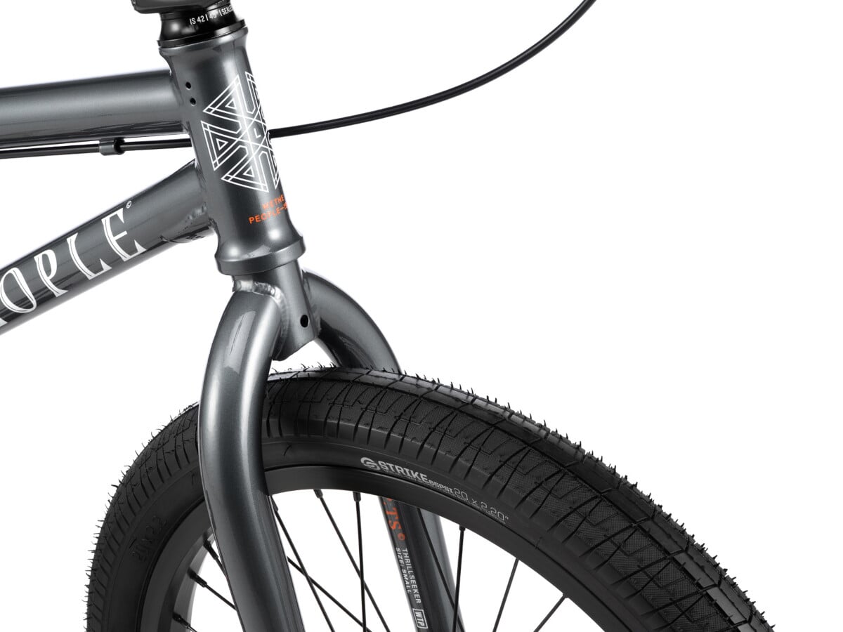 Das wethepeople "Thrillseeker S" BMX Rad - Gun Metal Grey ist ein modern ausgestattetes BMX Komplettrad der Einstiegsklasse und bietet Dir eine grundsolide Ausstattung mit Anbauteilen von Salt, SaltPlus und eclat. Das wethepeople "Thrillseeker S" BMX Rad - Gun Metal Grey kommt mit einem sehr kurzen Hinterbau von 12.75" und einer kürzeren Gabel mit 26mm Vorlauf, was das BMX um einiges wendiger macht und den Lernprozess unterstützt, zusätzlich ist es mit einem abgedichtetem Steuersatz ausgestattet, so dass der Pflegeaufwand im Vergleich zum Loose Ball Steuersatz deutlich reduziert ist. Mit seinem 19" langen Oberrohr ist das wethepeople "Thrillseeker S" BMX Rad - Gun Metal Grey als Allround BMX Rad ideal für jugendliche Einsteiger des BMX Sports oder den Wechsel von einem 18" Zoll BMX Rad auf ein 20" BMX Rad und bietet Dir die Möglichkeit Dich in allen BMX Disziplinen auszuprobieren zu können und erste Tricks zu erlernen.