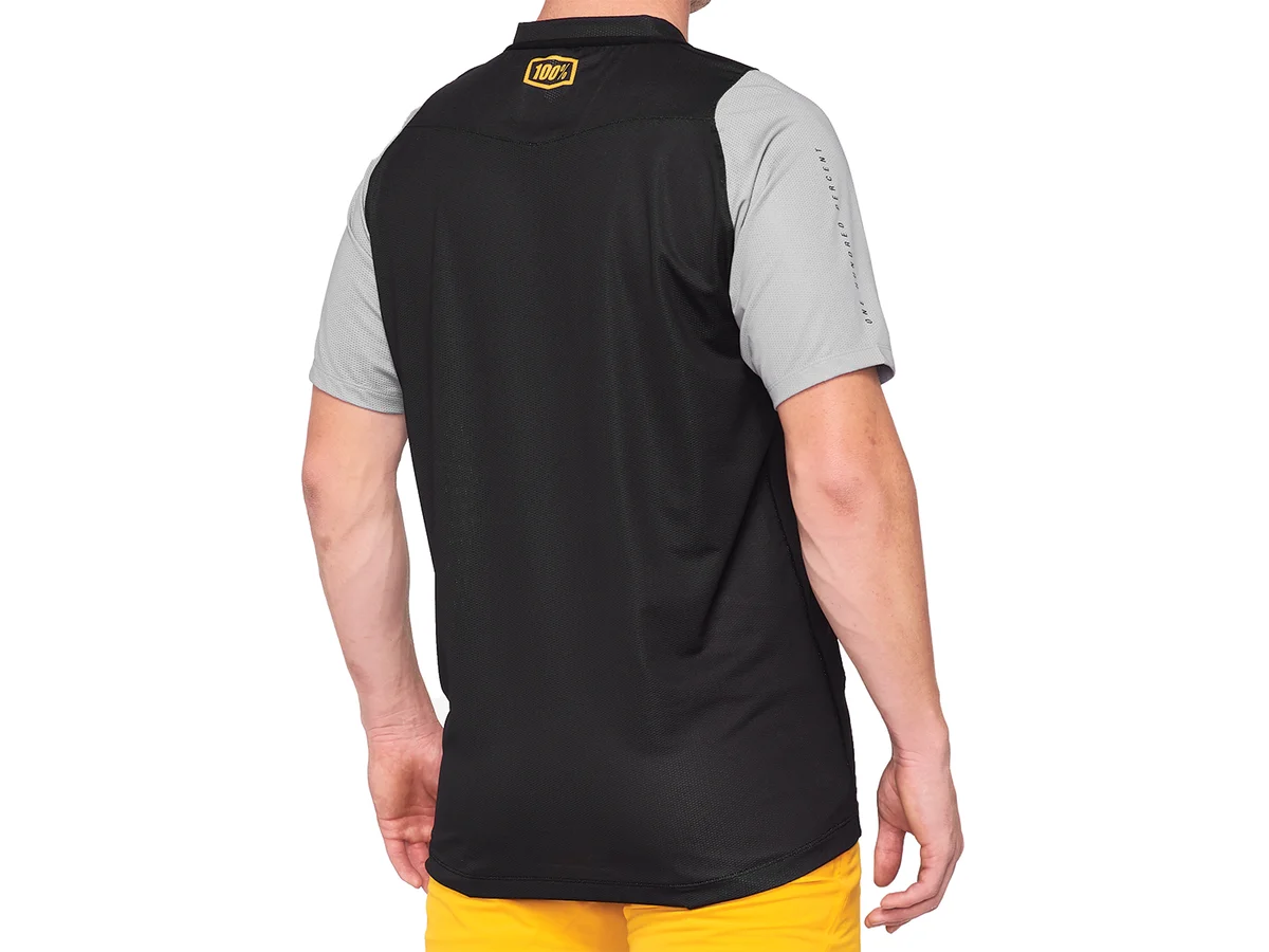The 100 Percent "Celium" Jersey T-Shirt - Black/Mustard consists of 100% polyester/elastane material and comes with an extended-cut back (longer back section). The 100 Percent "Celium" Jersey T-Shirt - Black/Mustard offers greater safety during sport with reflective logos.