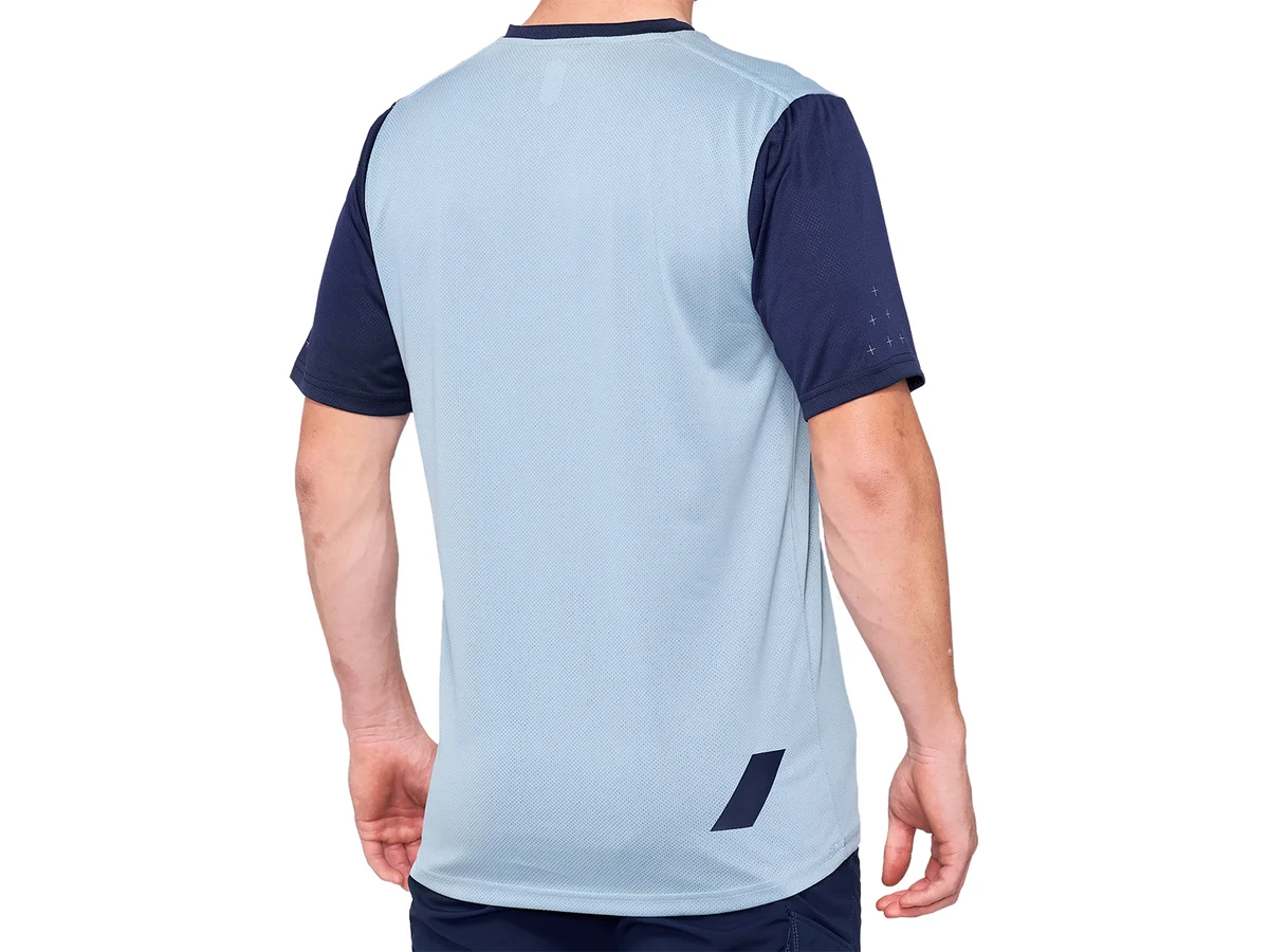 The 100 Percent "Ridecamp" Jersey T-Shirt - Light Slate/Navy consists of 100% Polyester and comes with an extended-cut back (longer back section). The 100 Percent "Ridecamp" Jersey T-Shirt - Light Slate/Navy offers greater safety during sport with reflective logos.