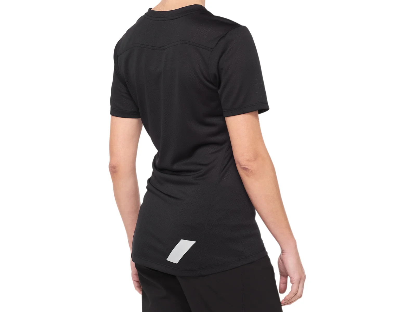 The 100 Percent "Ridecamp Jersey Women" T-Shirt - Black is a functional garment made from a moisture-regulating material with an elongated back for increased comfort.