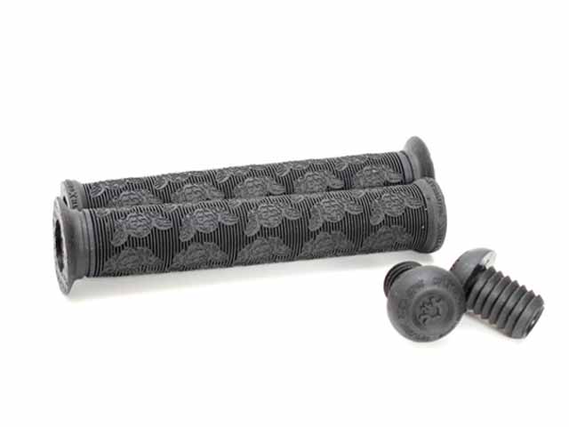 The Coalition "Hell On Earth" Grip is the result of a collaboration between coalition and the T-shirt brand ?Hell On Earth?. It is made of soft krayton rubber, has a low flange and the Coalition "Hell On Earth" Grip has nylon push-in bar ends.