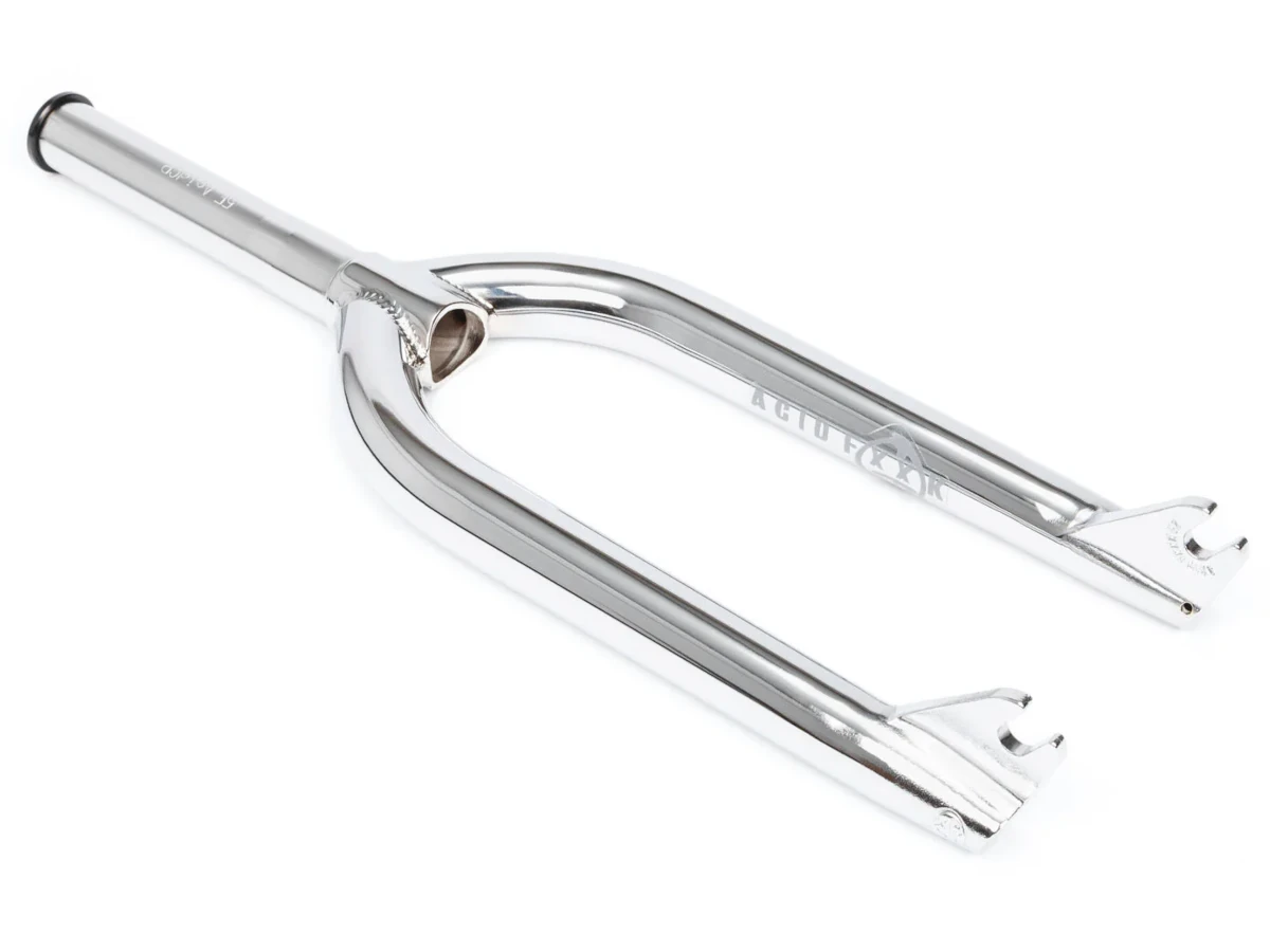 This BSD "Acid V2" BMX Fork is a high quality and stable street fork which is made from heat treated 4130 CrMo. The 160mm long and CNC machined steerer is made of one piece and has an integrated bearing race which ensures minimal installation effort. The fork arms of the BSD "Acid V2" BMX Fork are butted and tapered downwards to the very stable 6mm thick investment cast dropouts which have a offset of 30mm. The design of this fork offers space for pegs but also for fat 2.4" tires and thanks to the selection of the best materials and modern manufacturing processes BSD provides you here with a very high quality and stable street fork including an aluminum top bolt.