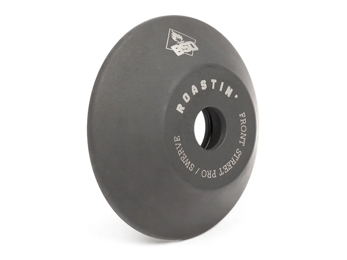 The BSD "Roastin" Front Hubguard is Tam Roulston's signature Roastin' hub guard for BSD front hubs. Engineered from heat-treated chromoly, it offers a precise fit for BSD Front Street Pro and Swerve hubs without the need to spread your dropouts. CNC machined for exceptional durability and strength, this BSD "Roastin" Front Hubguard provides the ultimate protection for your hub.