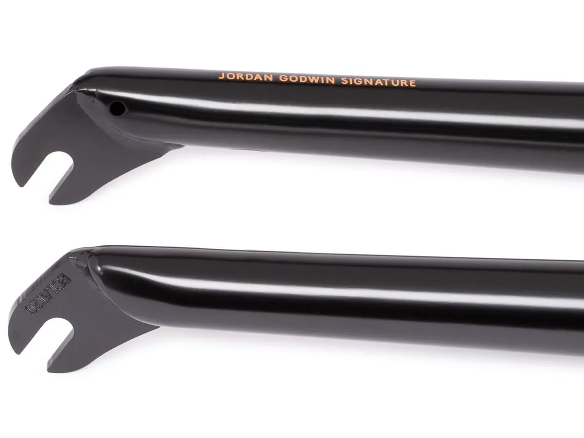 The eclat "Storm 20mm" BMX Fork (Jordan Godwin) is the result of over 3 years of laboratory testing and manufacturing refinements to create the ultimate BMX fork. Taking the eclat "Storm 20mm" BMX Fork (Jordan Godwin) is recipe as a base, for 2020 eclat are excited to offer BMX PRO and international powerhouse Jordan Godwin his own signature fork, complete with a super responsive 20mm offset and his own hand-drawn graphic set. One of the steepest forks on the market, Jordan’s signature Storm fork is built to take all the abuse you could throw at it (or throw it at!).