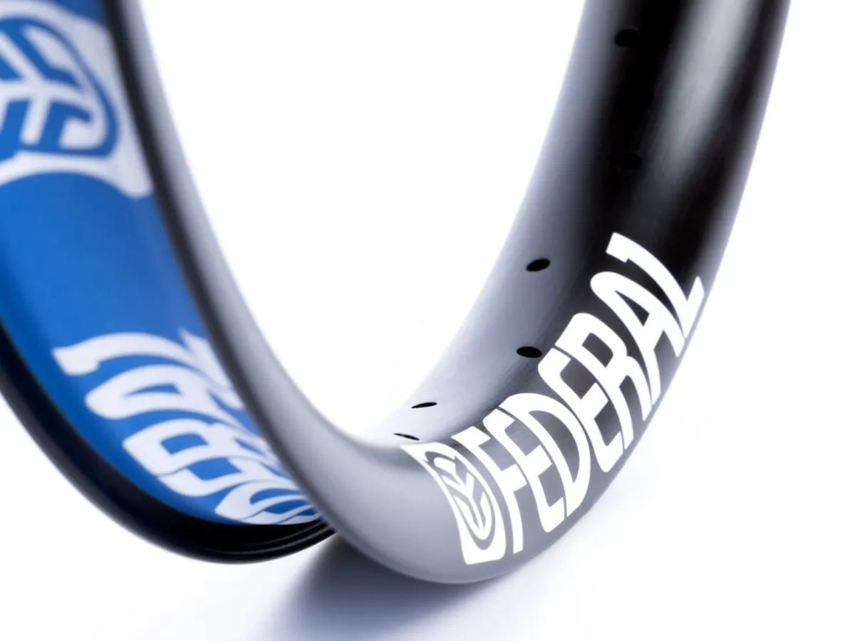 The Federal Bikes "Aero XL" BMX Rim is currently one of the widest rims on the market with a width of 40mm and was designed to follow the general trend of using wider and wider BMX tyres (2.2" - 2.5"). Since most riders are now riding without brakes, Federal decided on an oval design to develop an extra stable rim. Due to the added depth of the oval shape, it makes the Federal Bikes "Aero XL" BMX Rim also more resistant to so-called flat spots, which can be caused by hard impacts. The Federal Bikes "Aero XL" BMX Rim comes with a rim tape.