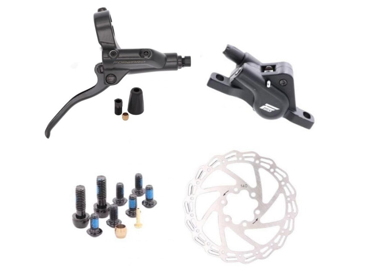 The Forward "C-Jet" Race Disk Brake Kit - 1400mm is ready to use and can be installed. The Forward "C-Jet" Race Disk Brake Kit - 1400mm consists of a cable, a brake disc, the necessary screws, and the brake lever.