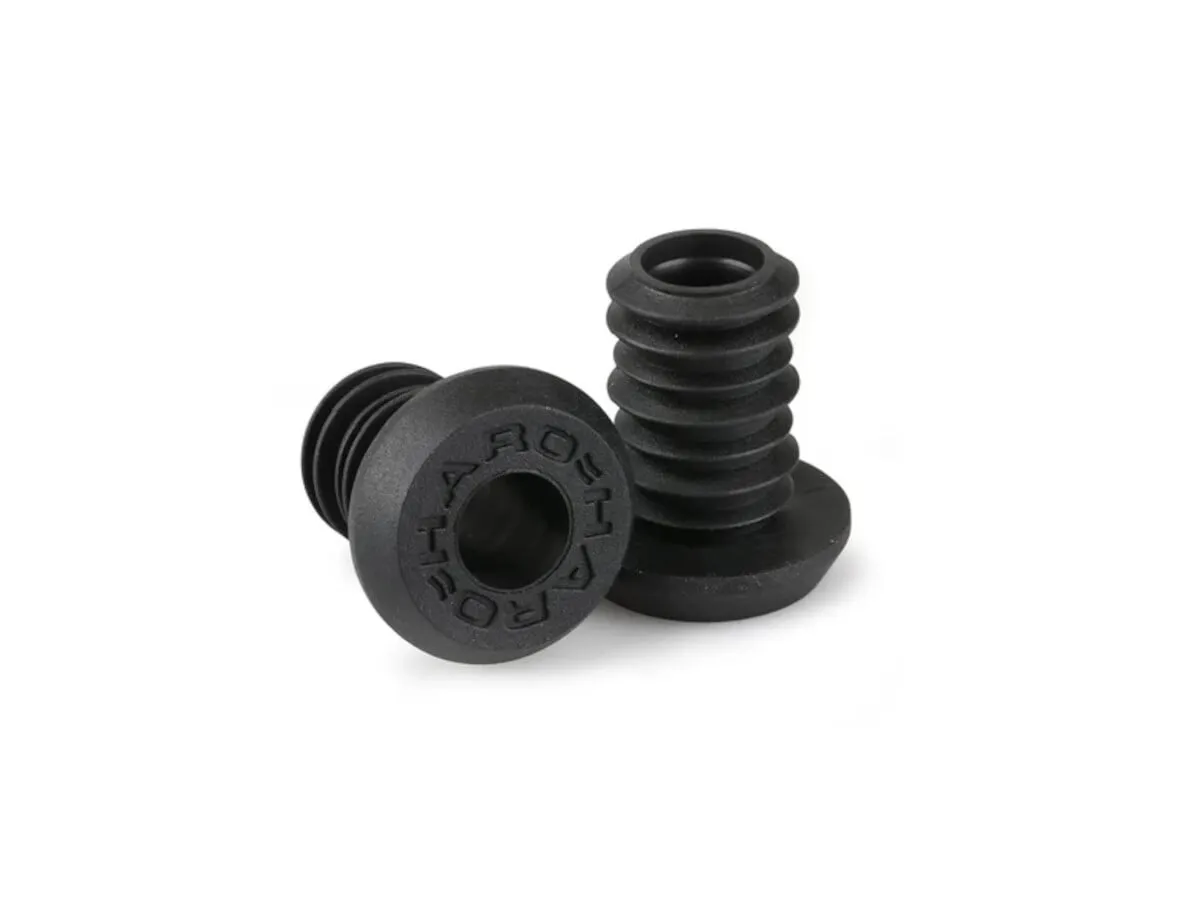 The Haro Bikes "Team Black Flangless" Grips - Without Flange come now with a length of 150mm and has a finely ribbed surface which feels soft and comfortable but also grippy. The included pluggable nylon barends of the Haro Bikes "Team Black Flangless" Grips - Without Flange provide a clean look and offers protection for your bar ends.