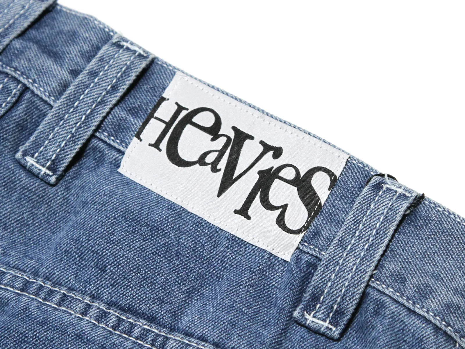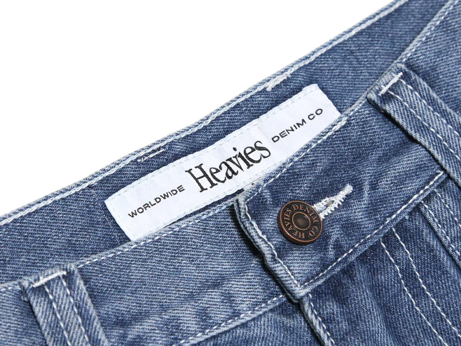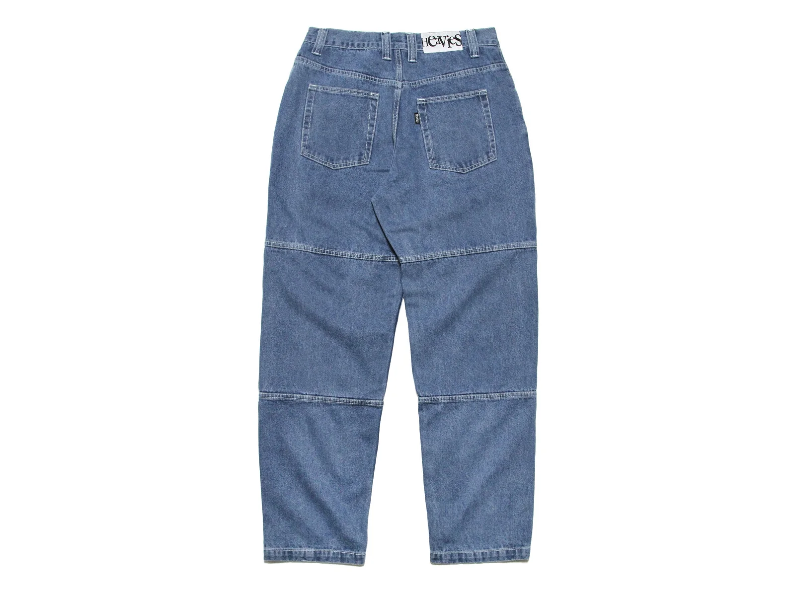 The Heavies "Bern" Pants - Blue is a baggy fit denim jeans. The Heavies "Bern" Pants - Blue has a "Heavies" logo stitched on the change pocket.