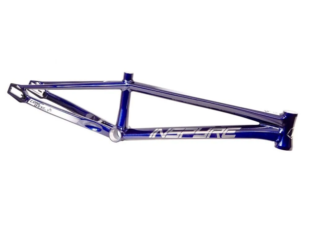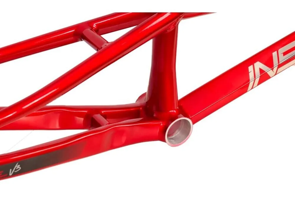 Compared to its predecessor, the V2, the Inspyre Bicycles "Concorde V3 Pro XXXL" BMX Race Frame is 15% lighter while maintaining top-level durability. The frame’s clean aesthetics, flat welds, and under-clearcoat decals ensure a premium finish that looks as fast as it rides.
