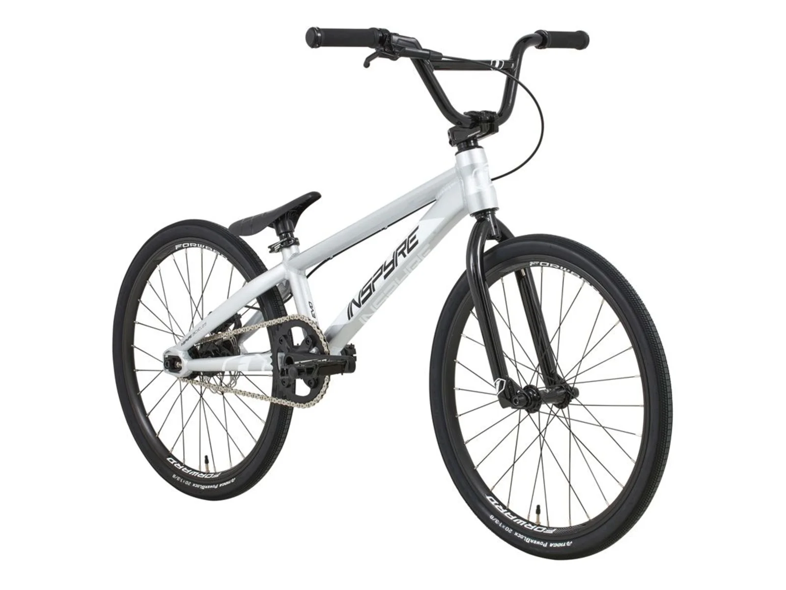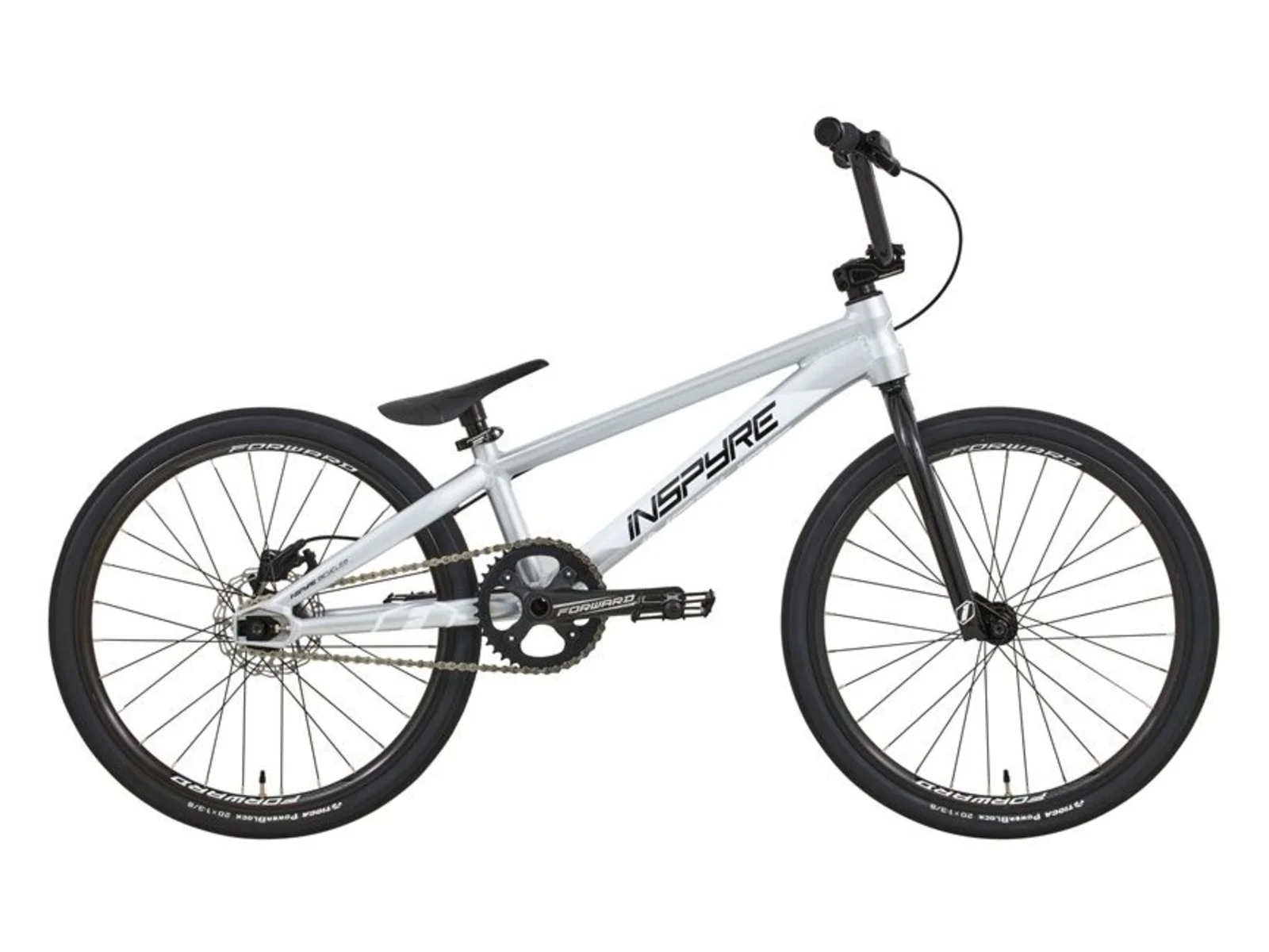 The Inspyre Bicycles "Evo Disk Expert" BMX Race Bike - Grey is an uncompromising race bike made from hydroformed 6061-T6 aluminum, guaranteeing you absolute precision on the track thanks to hydraulic Alhonga disc brakes and grippy Tioga Powerblock tires. With its high-quality Forward Joyride crankset and responsive hub system, the Inspyre Bicycles "Evo Disk Expert" BMX Race Bike - Grey provides the perfect foundation to take your racing performance to the next level.